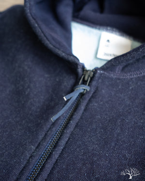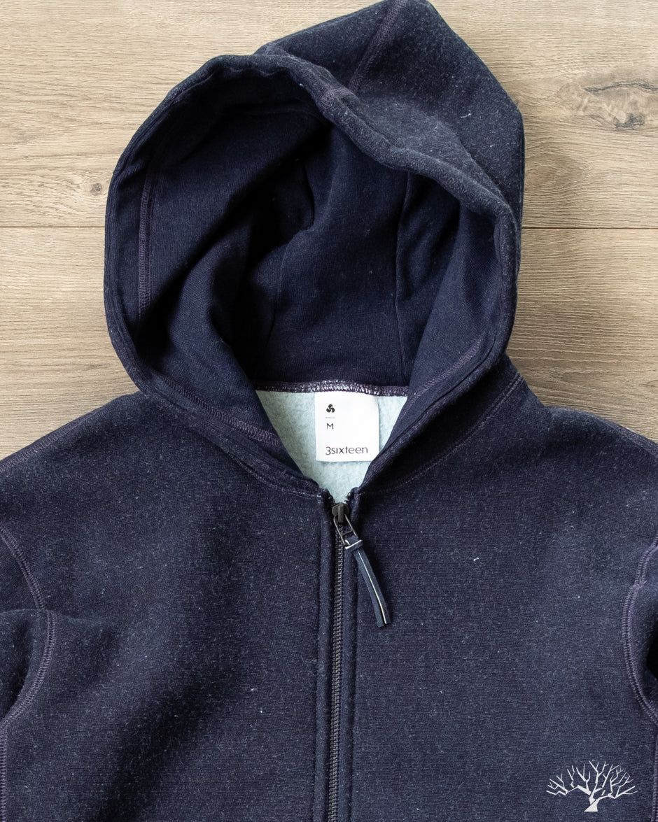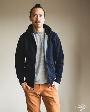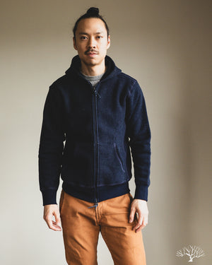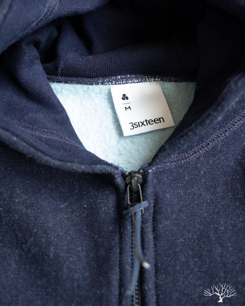 3sixteen's Heavyweight Zip Hoody in Indigo is a custom yarn-dyed indigo knit fleece that has a beautiful variegated indigo surface. 3sixteen has ever-so-slightly modified the fit for 2023 with a more roomy cut throughout, including the arms, and longer sleeve lengths. Otherwise, this is the same core heavyweight hoody from years past that will fade excellently over time.