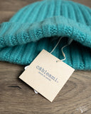 Câbleami Cashmere 2x2 Rib Watch Cap in Turquoise is an amped up luxury version of their standard waffle cap with a full on 100% cashmere fabric and a wider rib pattern. Made for those who just can't deal with anything but the finest and softest material.
