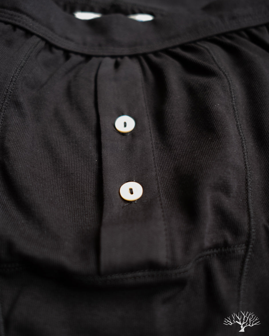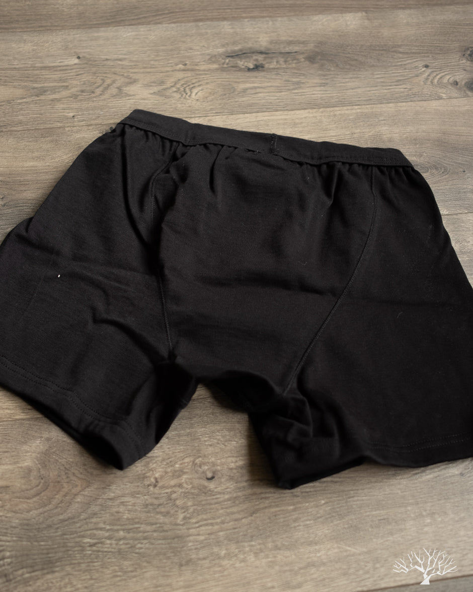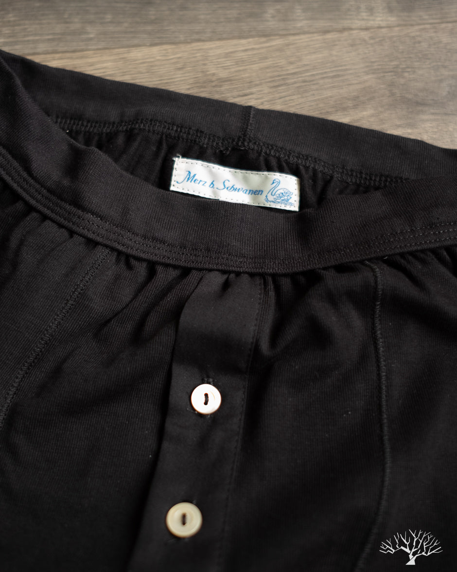 Enjoy the freedom of Merz b. Schwanen Loopwheel Underwear Boxer Briefs. This Deep Black Merz b. Schwanen underwear is made with 100% organic cotton on their original loopwheeler machines in Germany. No side seams, a soft waistband, and mother of pearl buttons for the front for an excellent pair of briefs. Whether you're concerned about wearing all-natural underwear or not, we're certain you'll love the soft feel of these.