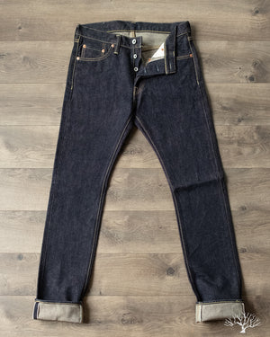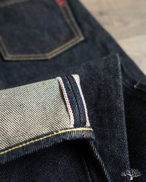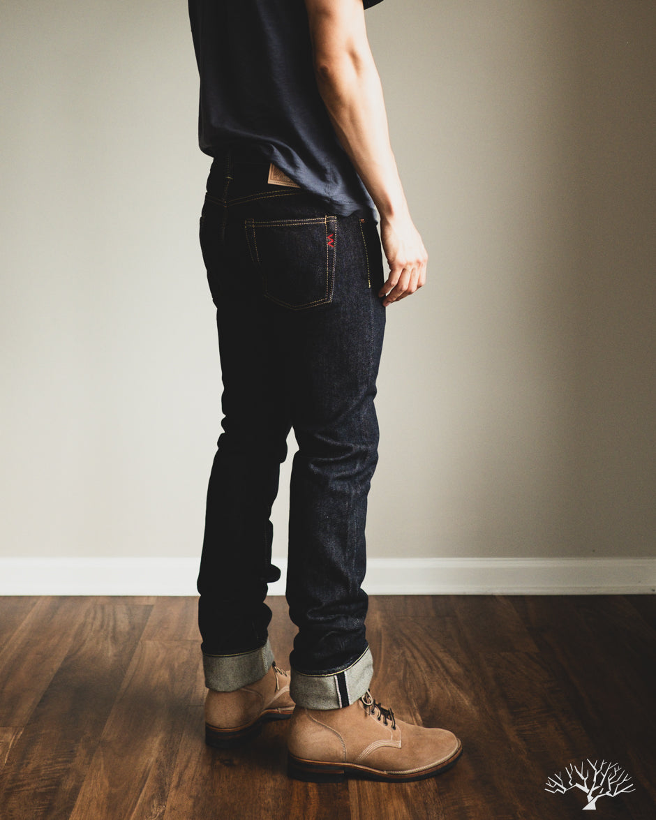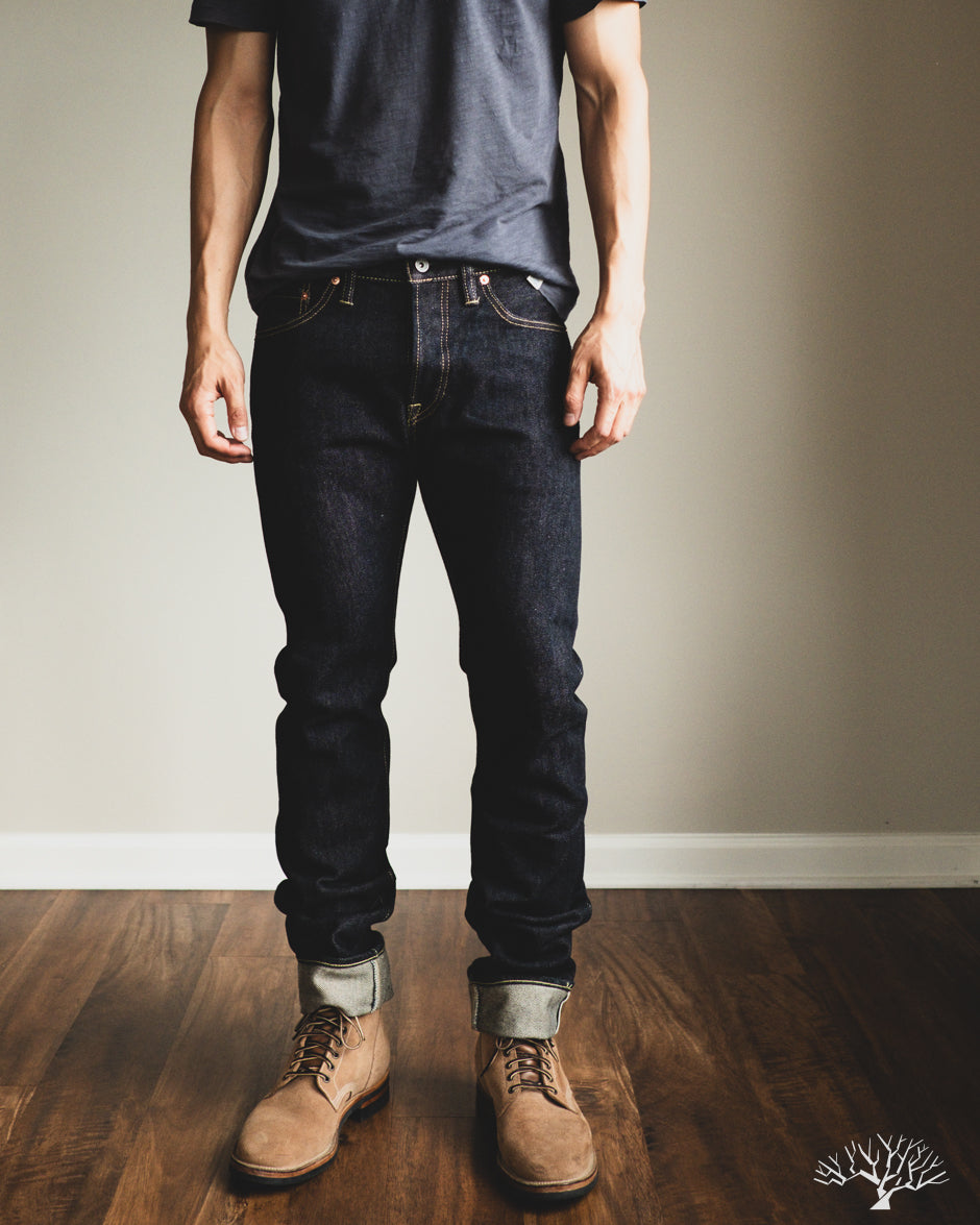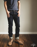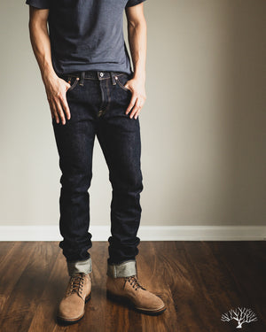 Iron Heart's flagship 21oz indigo selvedge Japanese Denim is known for its supremely soft feel, despite its impressive weight. The IH-555 cut is a medium-to-low rise denim with a slim cut throughout the legs. While the 21oz fabric might seem a bit too much for you, these break-in unbelievably well to make for a comfortable yet sturdy pair of denim.