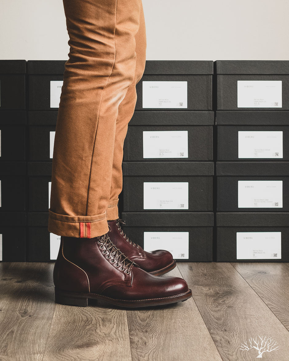 Note: This product is excluded from Welcome Code discount. All sizes represented here (and the size you add to cart) are the size stamped on the inside of the Viberg pair. This size is neither US nor UK sizing, but does match most closely with UK sizing. If you have questions on sizing, please reach out to us.