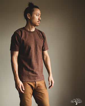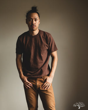 The UES No. 8 Slub Nep Tee in Brown features an exceptional texture with heavyweight construction for a thick handful of tee. The slub texture stands out as the main attraction, making this unique among the heavyweight tees. These are excellent basics that you'll love to wear during the cooler months of the year.
