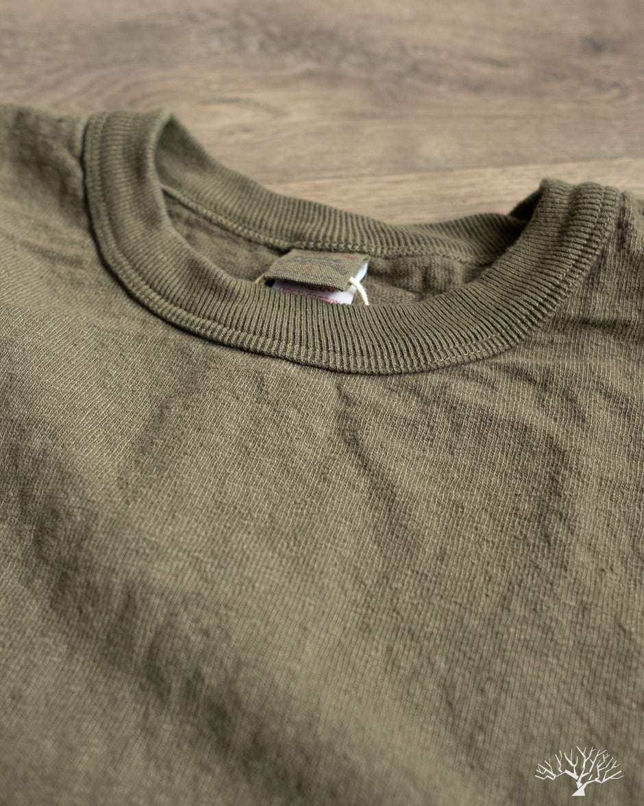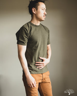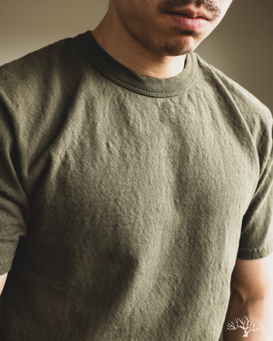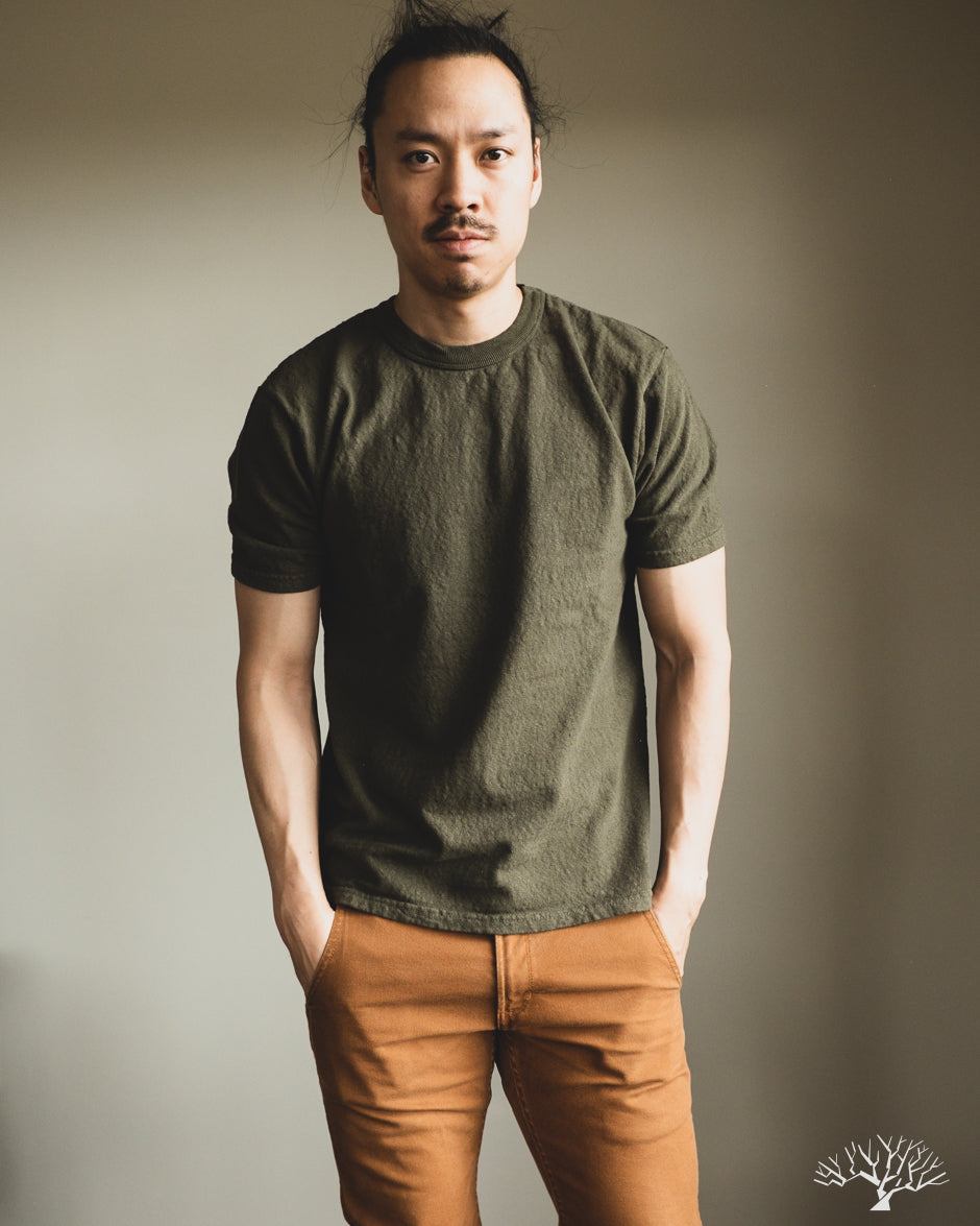 Please note the Olive color has a shade of brownish hue to it. Compared to the Green slub tee, it has more of a true olive tone and less vibrancy (more muted).