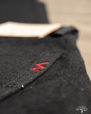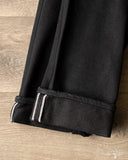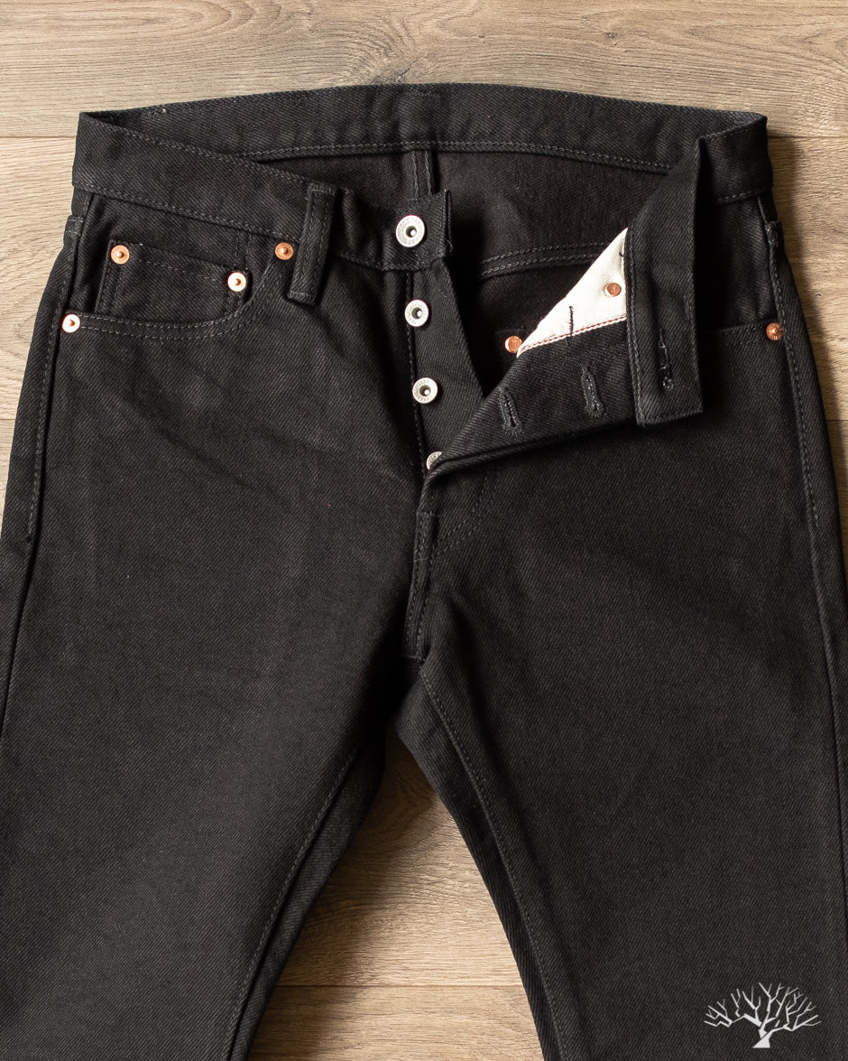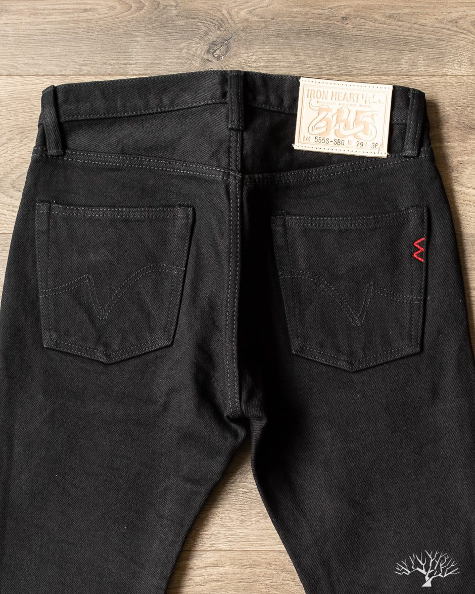Iron Heart's Superblack-Fades-to-Grey 21oz denim cut in their 555 super slim fit. This is an impressively black pair that will fade to reveal greyish-white undertones. Despite clocking in a 21oz, these break in nicely for a comfortable pair that is both heavy duty and easy on the legs. The IH-555 cut is a medium-to-low rise pair with a slim leg throughout (the slimmest out of all the Iron Heart cuts).