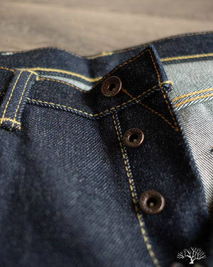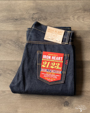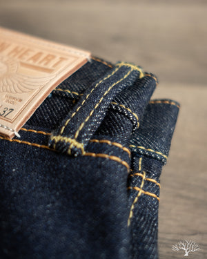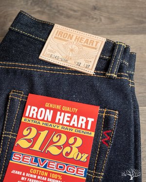 The Iron Heart Ultra Heavy Raw (UHR) 21/23oz Straight Cut Selvedge Denim is a rare denim produced in limited quantities. The UHR denim is an incredibly dense fabric due to the single weft, single warp construction, which makes this one of the more durable and hardwearing denim that Iron Heart carries. The break-in on these won't be easy, and at times can feel like cardboard, but with patience and dedication these turn into a beautiful piece of faded art. The 21/23oz nomenclature is because these pairs start at 21oz but then becomes closer to 23oz after wash and shrinkage. The UHR denim is unsanforized and loomstate for a truly customized pair as you rinse and wear it in. Made for the true Iron Heart die hards or just the average joe who loves a pair to dedicate towards.