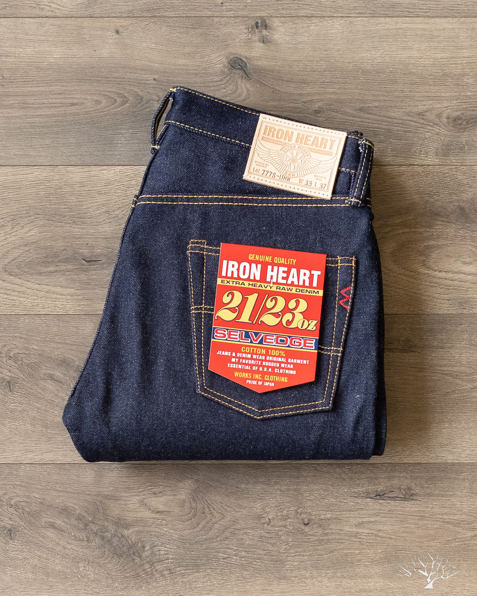 Iron Heart's famed Ultra Heavy Raw Selvedge Denim returns after a few years of absence. The IH-777S-UHR denim is known for its incredibly dense fabric that was made for masochists and denim enthusiasts alike. A hard break-in and at times can feel like cardboard, these will truly test your limits for who much you love raw denim. These start at 21oz but then becomes closer to 23oz after wash and shrinkage. The UHR denim is unsanforized and loomstate for a truly customized pair as you rinse and wear it in. Made for the true Iron Heart die hards or just the average joe who loves a pair to dedicate towards.