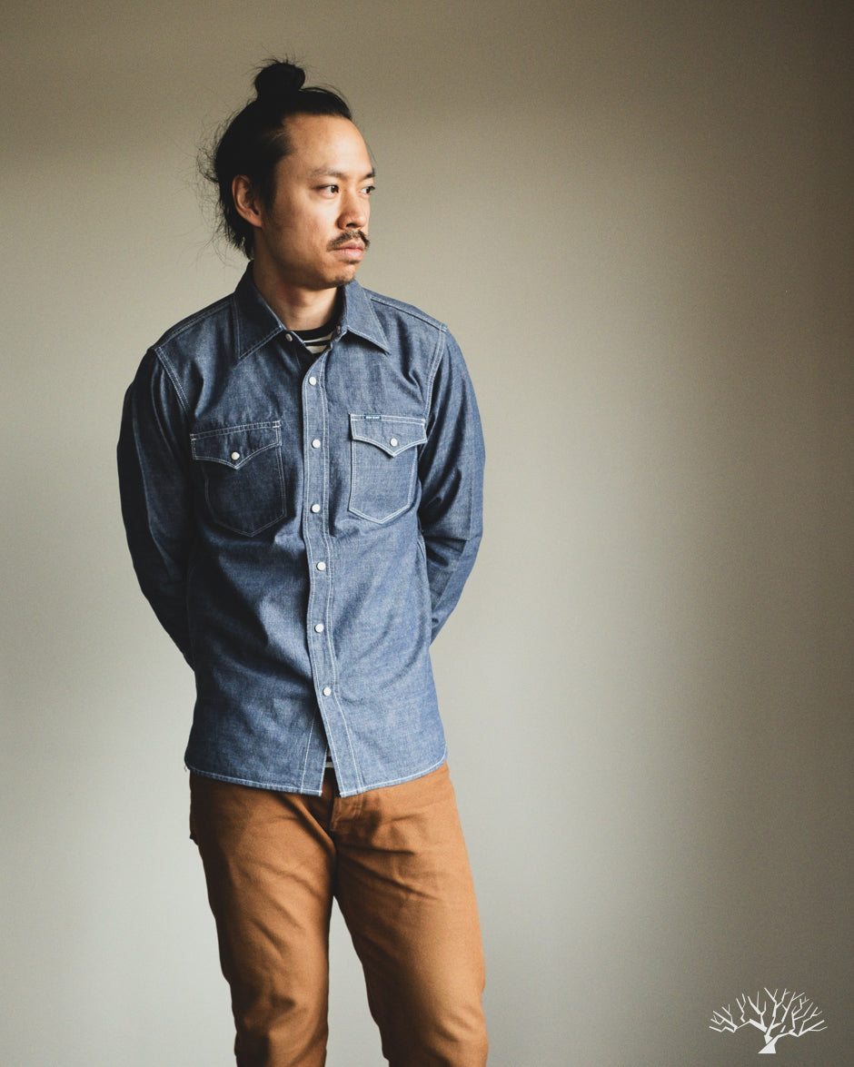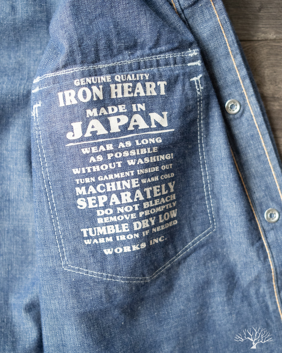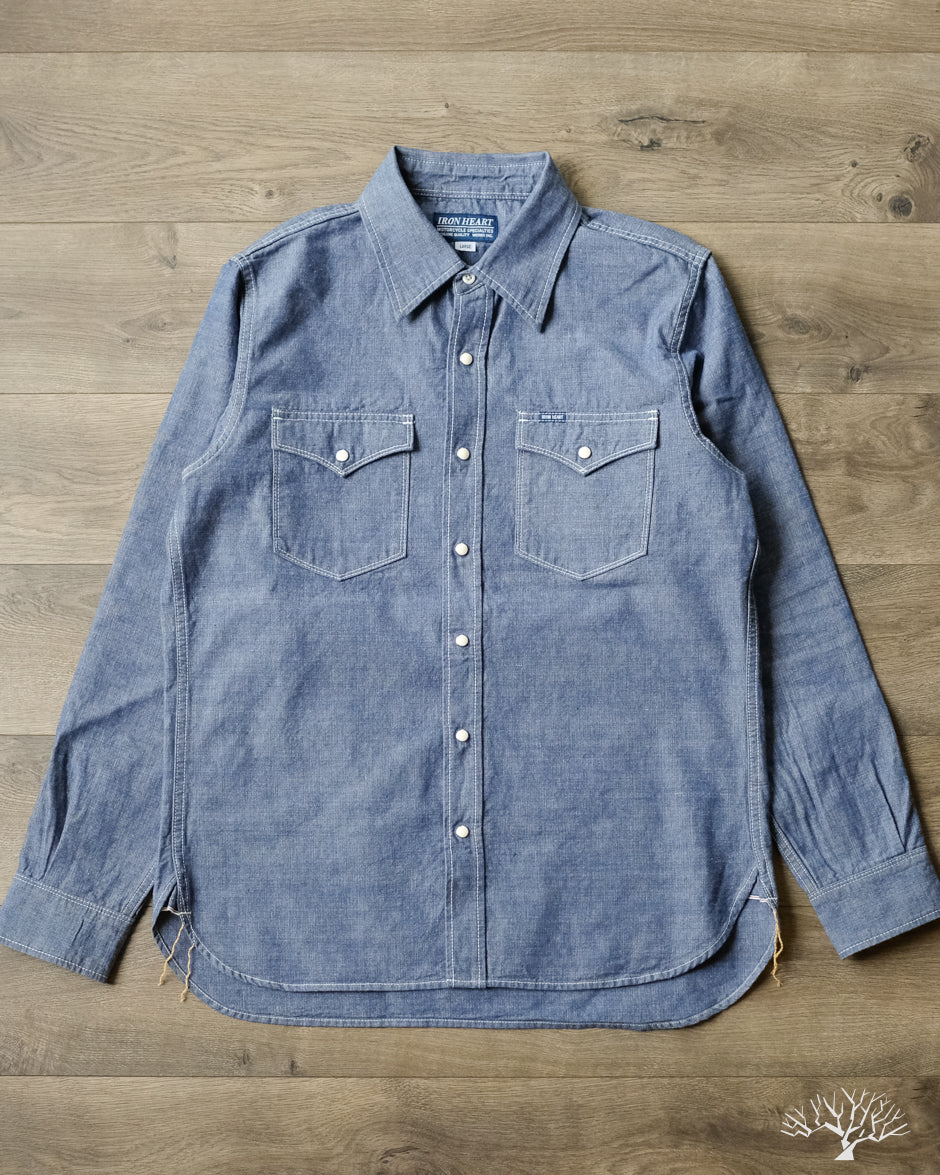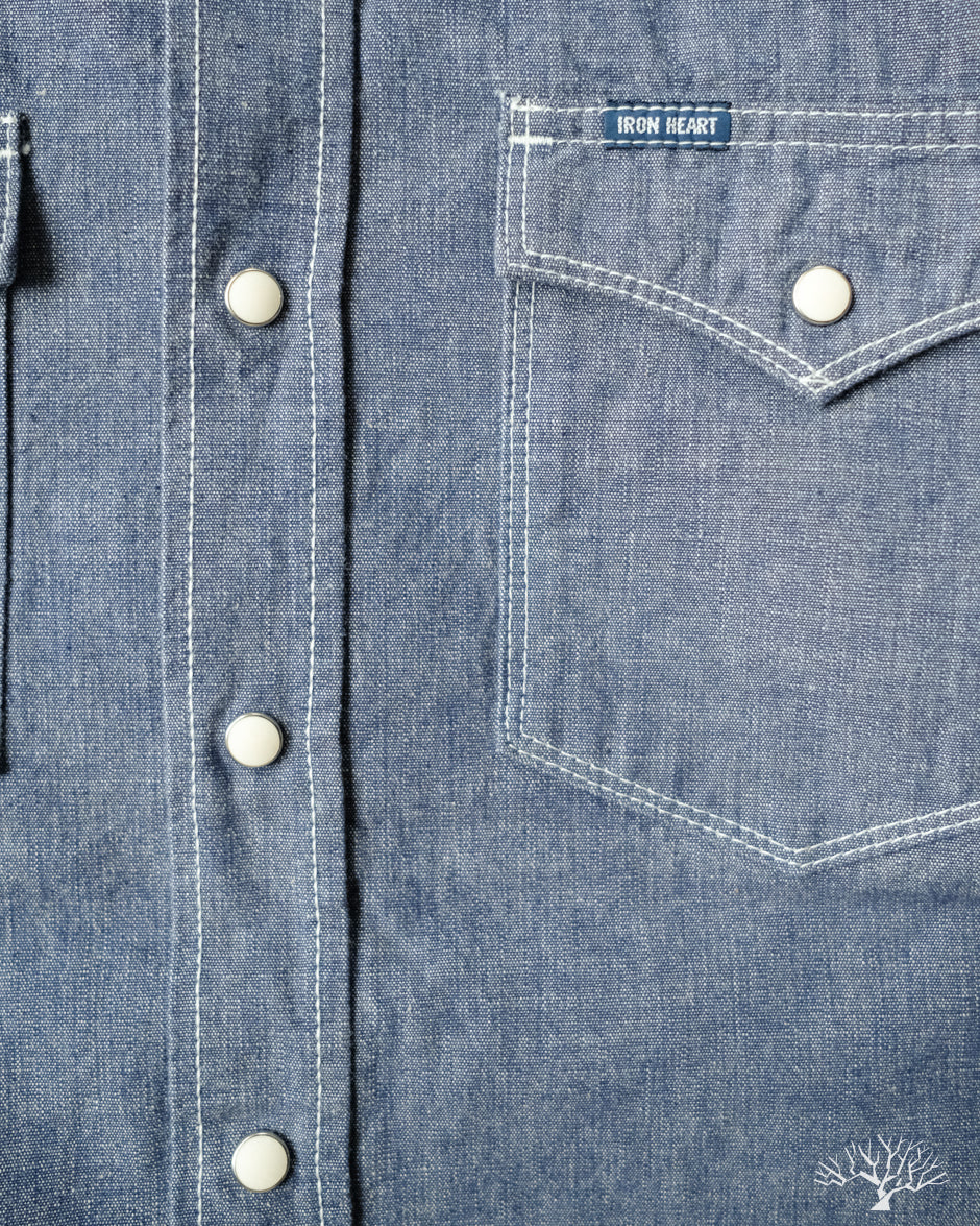 What's more attractive and versatile than a snap'd up Western-style chambray shirt? Iron Heart's 10oz Selvedge Chambray Single Yoke Western Shirt is one of those unique pieces in Iron Heart's lineup that stands alone. It's got slight western impressions with its western-style flap pockets, but without the usual western yokes on the front. Combine it with some white snaps and some chainstitch runoff, and you've basically got yourself one of nicest all-around shirts that will grind with you day-in-day-out.
