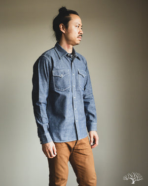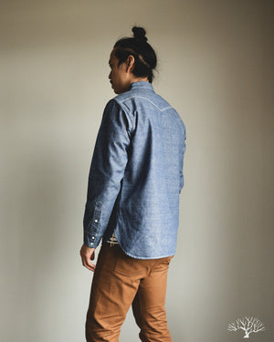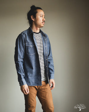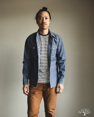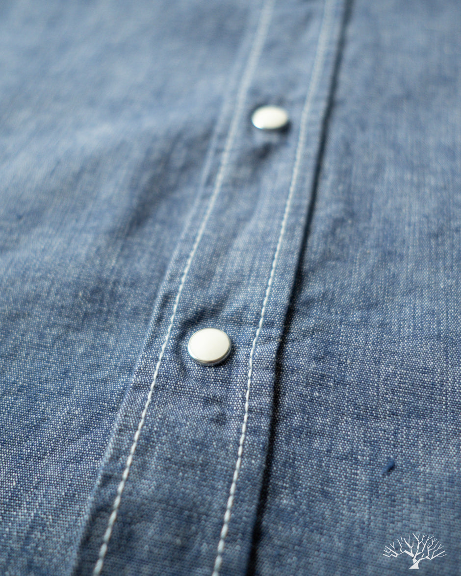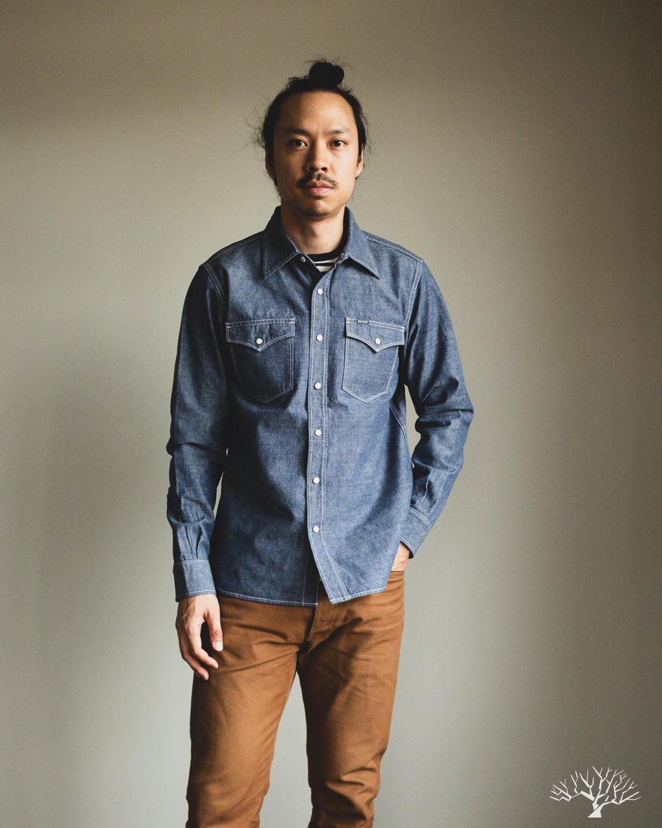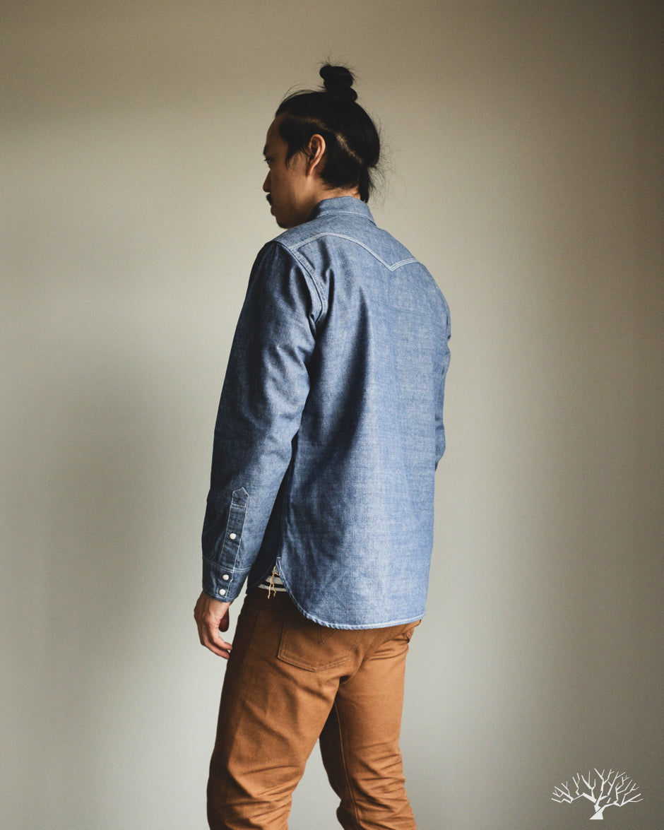 What's more attractive and versatile than a snap'd up Western-style chambray shirt? Iron Heart's 10oz Selvedge Chambray Single Yoke Western Shirt is one of those unique pieces in Iron Heart's lineup that stands alone. It's got slight western impressions with its western-style flap pockets, but without the usual western yokes on the front. Combine it with some white snaps and some chainstitch runoff, and you've basically got yourself one of nicest all-around shirts that will grind with you day-in-day-out.