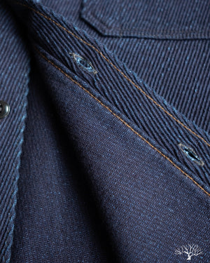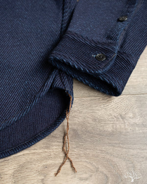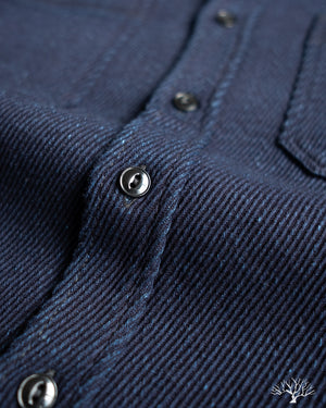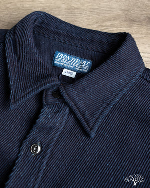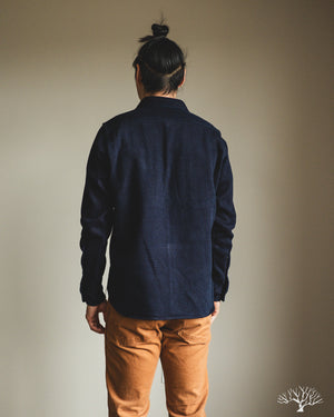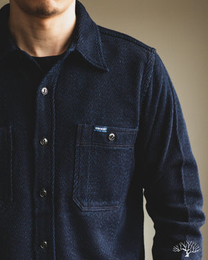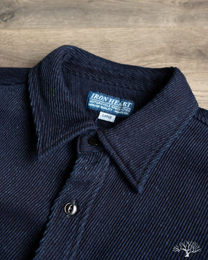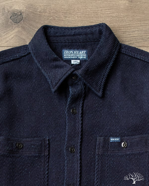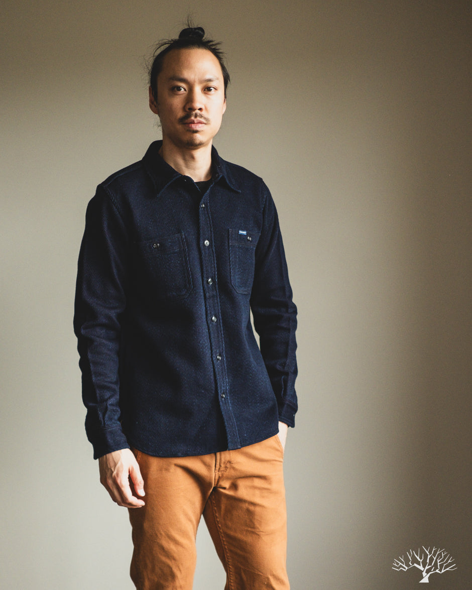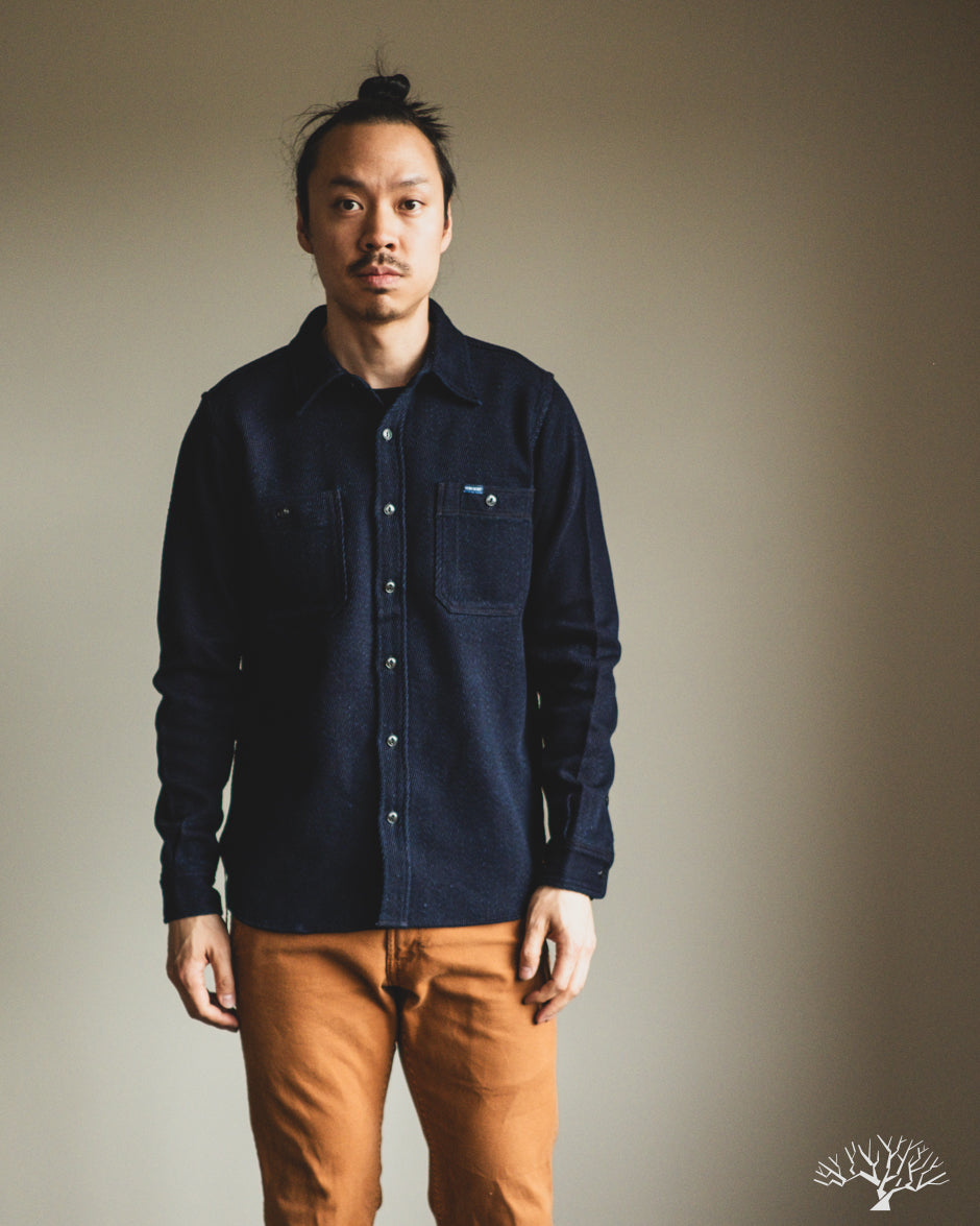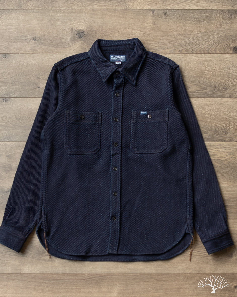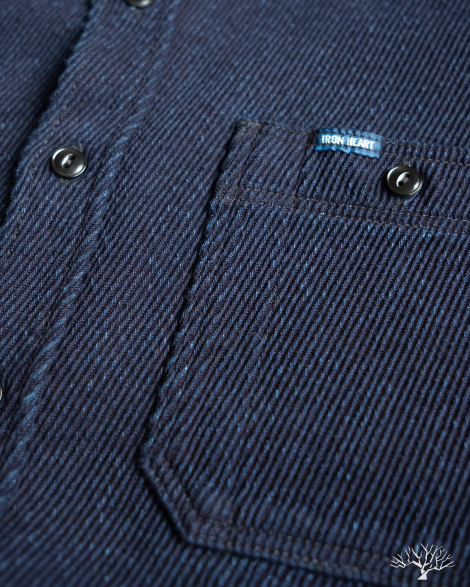 Iron Heart's classic work shirt cut, now available in this beautiful 14oz indigo Kersey fabric with a rugged and tough look, but underneath it all sits a soft and comfortable fabric. The textured twill combined with the indigo will result in some excellent fades over time. The Kersey Work Shirt has a a decent weight to it and should keep the chills away on even the cooler nights this summer.