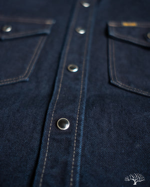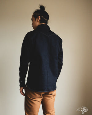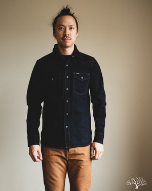 IHSH-295-IB - 14oz Selvedge Denim Western Shirt - Indigo/Black