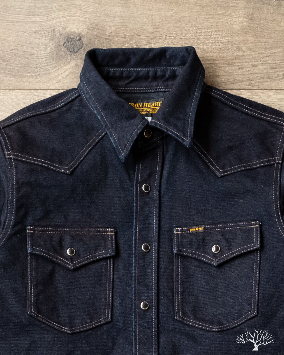 Iron Heart IHSH-295-IB - 14oz Selvedge Denim Western Shirt - Indigo/Black
