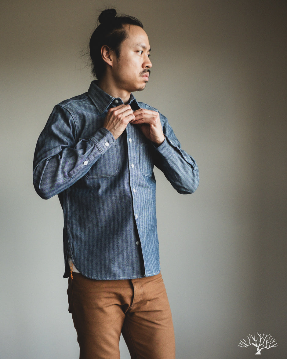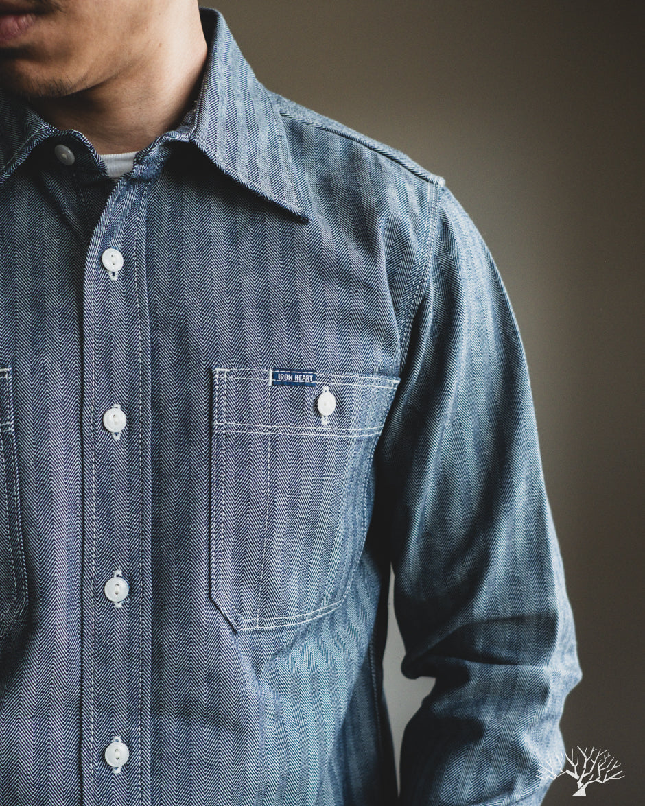 Iron Heart IHSH-308-IND - 12oz Herringbone Work Shirt - Indigo
