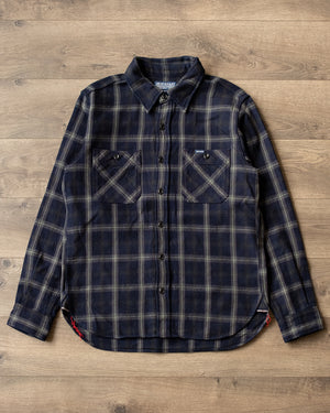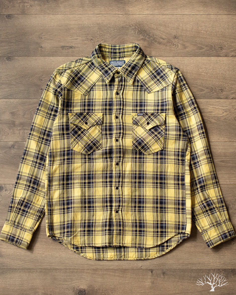 Iron Heart IHSH-431-BRN - Slubby Heavy Flannel Check Western Shirt - Brown