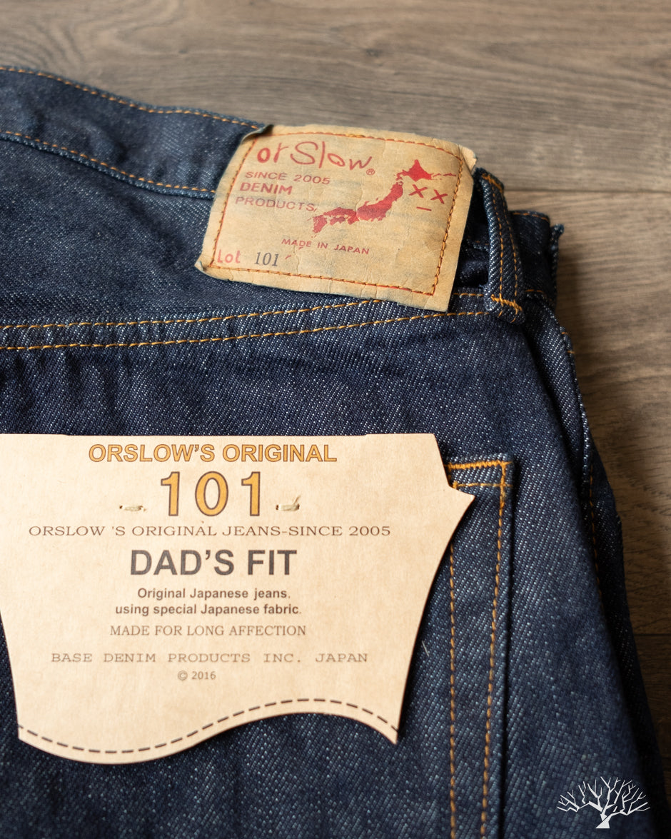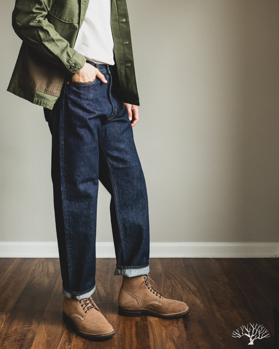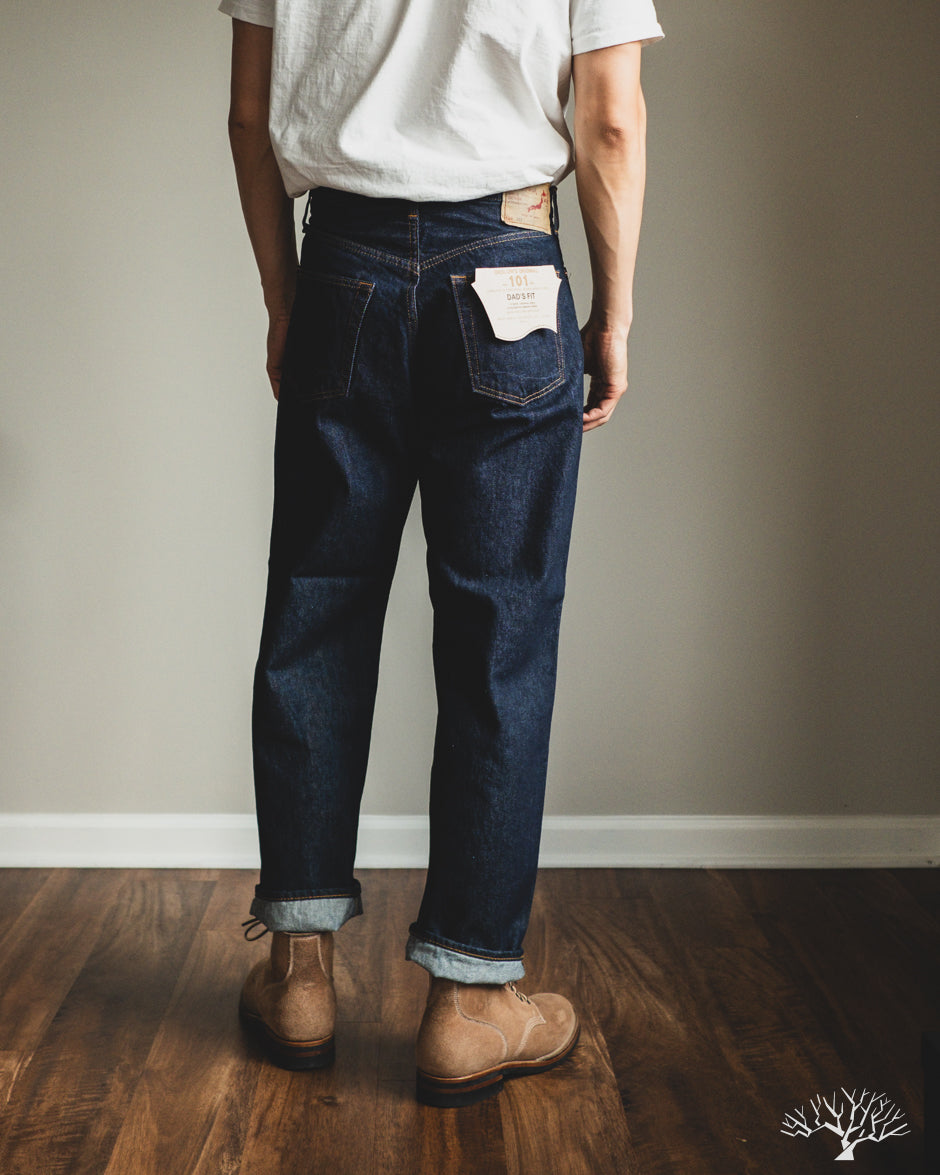 If you're looking for an easy wearing pair of relaxed fit denim, look no further than orSlow's 101 Dad's Fit Denim in this medium-weight 13oz one-wash fabric. The 101 Dad's Fit denim is cut with a higher rise, generous room in the top block, and a roomy straight cut through the legs. With these being one-washed, these are easy to wear and you won't have to worry about shrinkage. Appreciate the simplicity of these relaxed cut jeans.