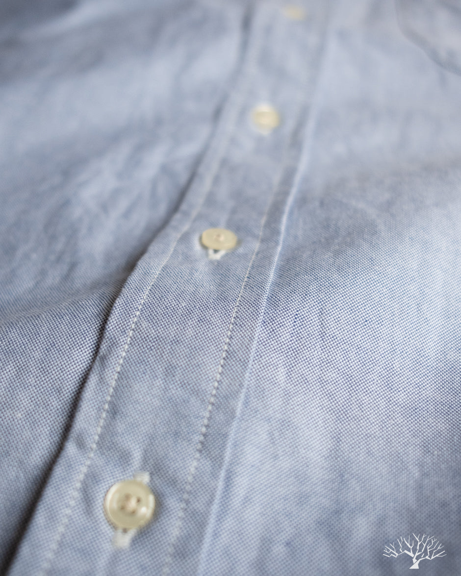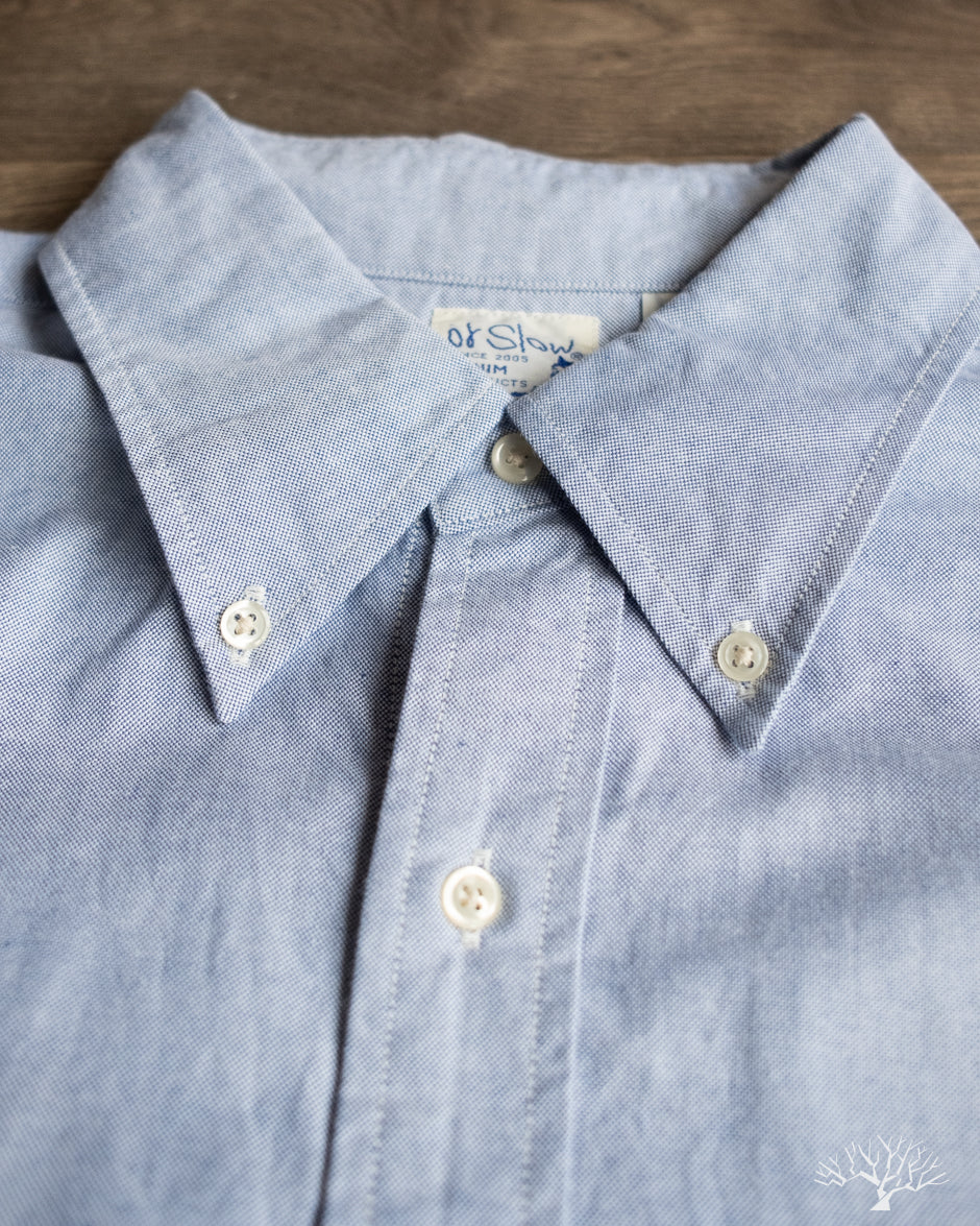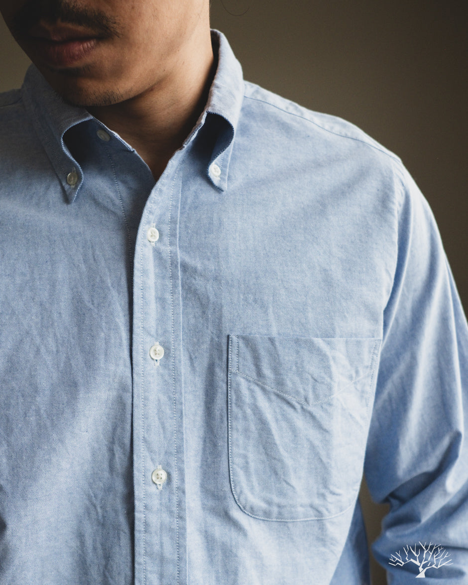 The orSlow Oxford Button Down Shirt is the perfect oxford for the uninitiated. This Light Blue Oxford is cut in their standard fit, not too slim nor too relaxed. This can be a staple in your wardrobe for a slightly more elevated look. Classic and timeless, the orSlow Oxford Shirt is made from 100% cotton in a lightweight combed cotton fabric that will never go out of style.