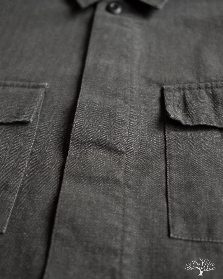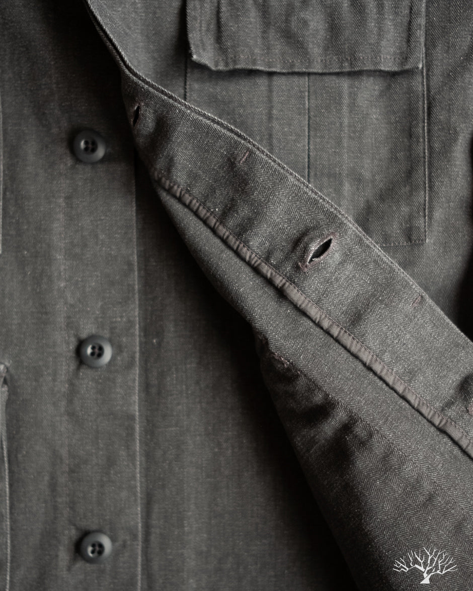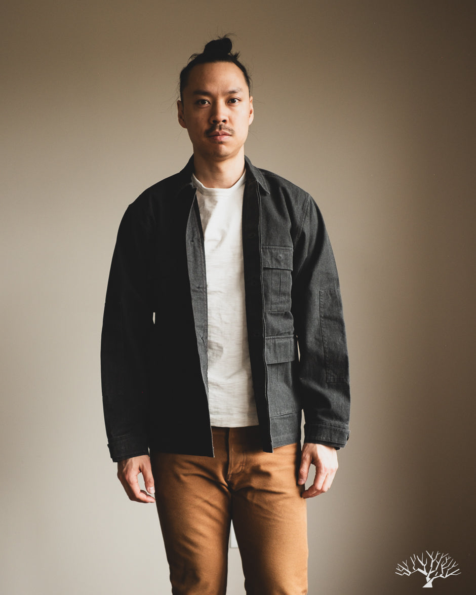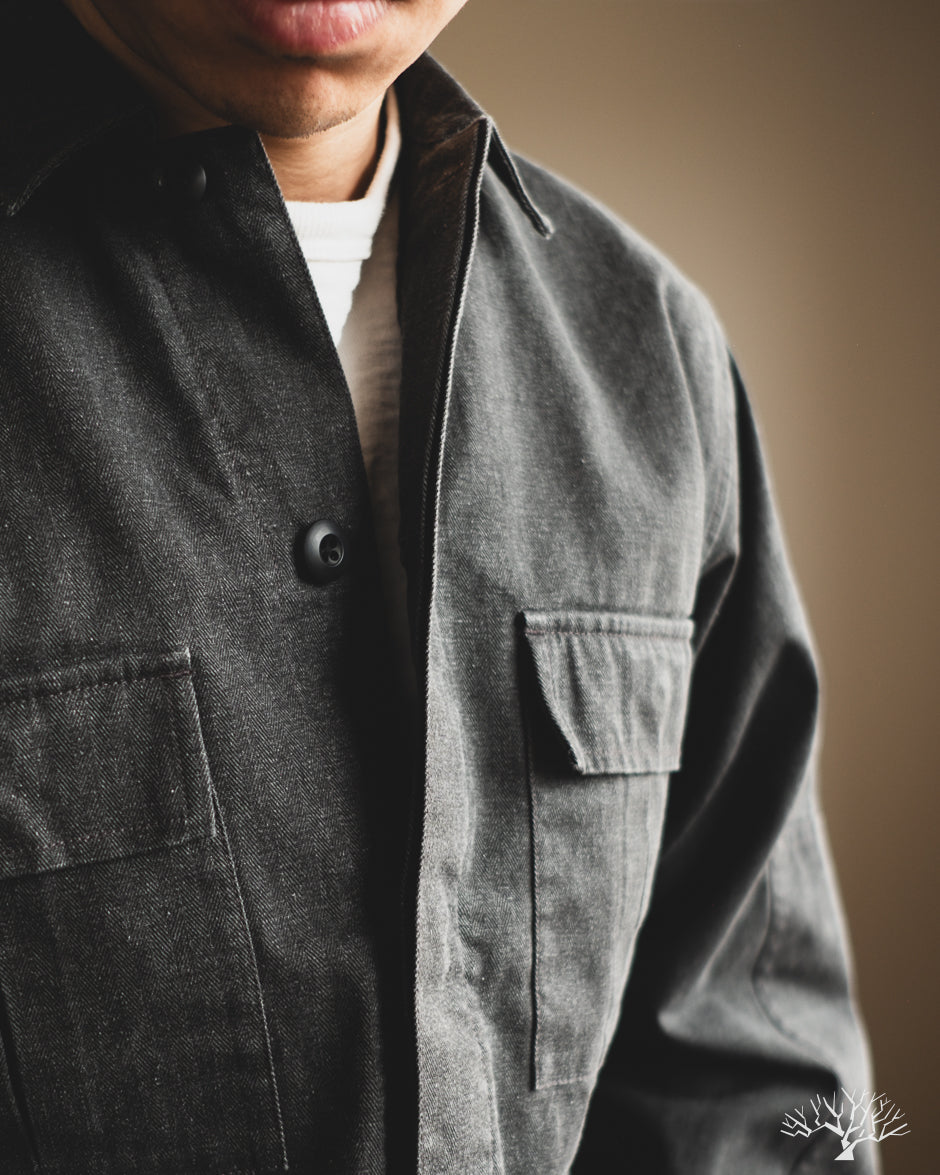 The 3sixteen BDU Jacket is inspired from US Army Battle Dress Uniforms. These are a classic 3sixteen style that takes inspiration from vintage pieces, but finished with modern functionality and details. This BDU Jacket is an excellent layering piece and adds a nice military-meets-modern flair to any outfit. This Charcoal Herringbone Twill fabric has been given a nice stonewash to bring out some of the lighter greys and a slightly worn-in appearance.