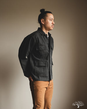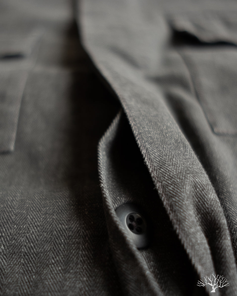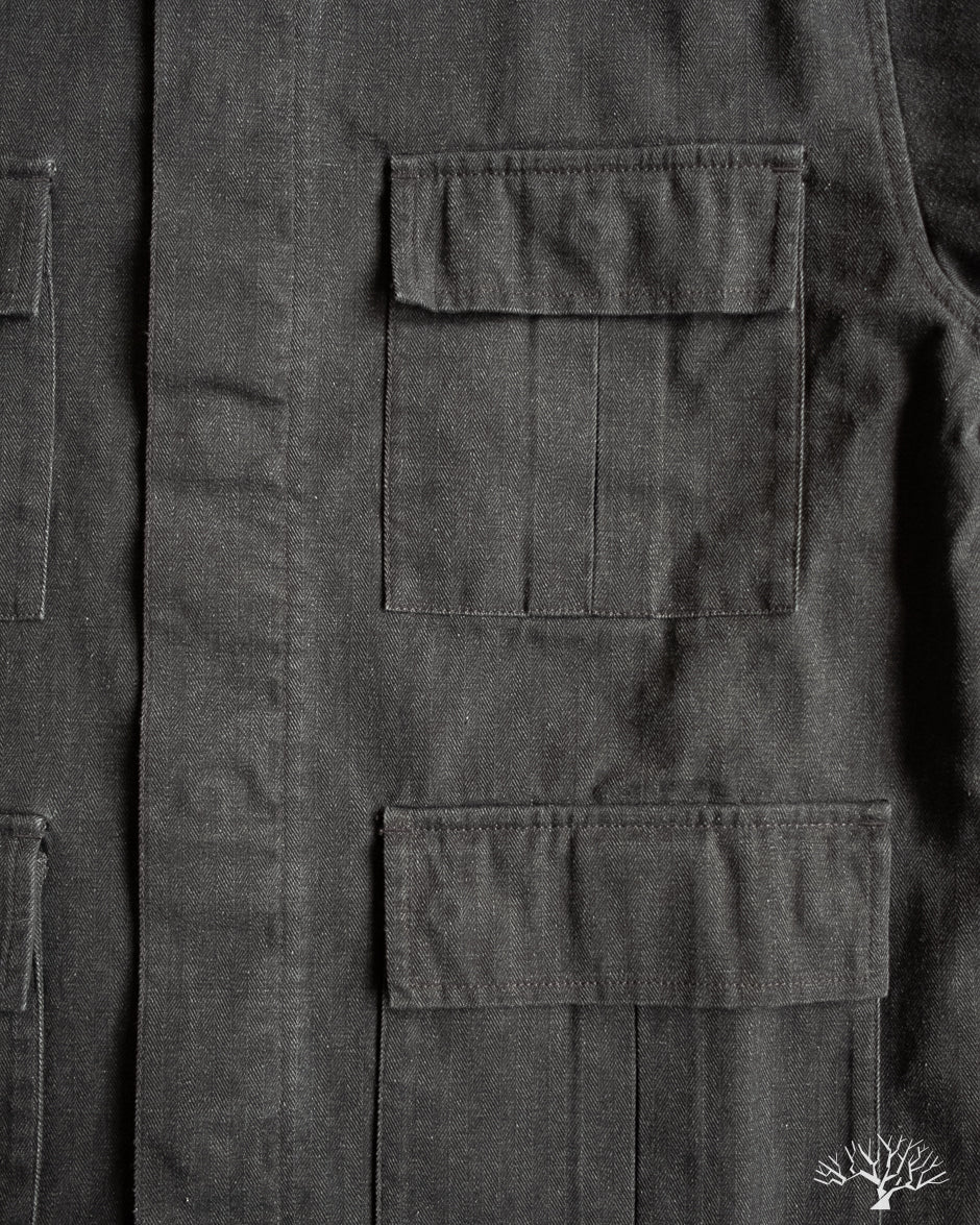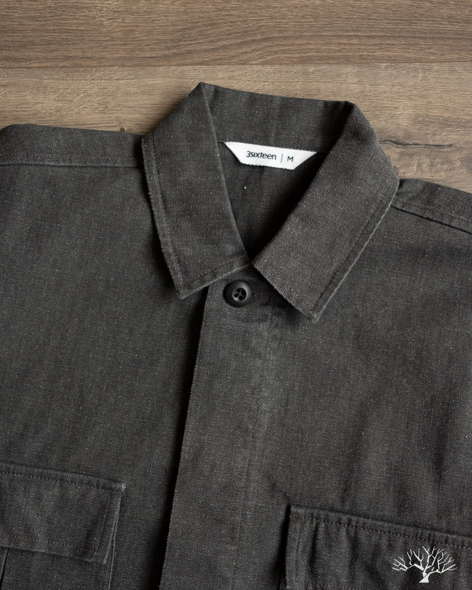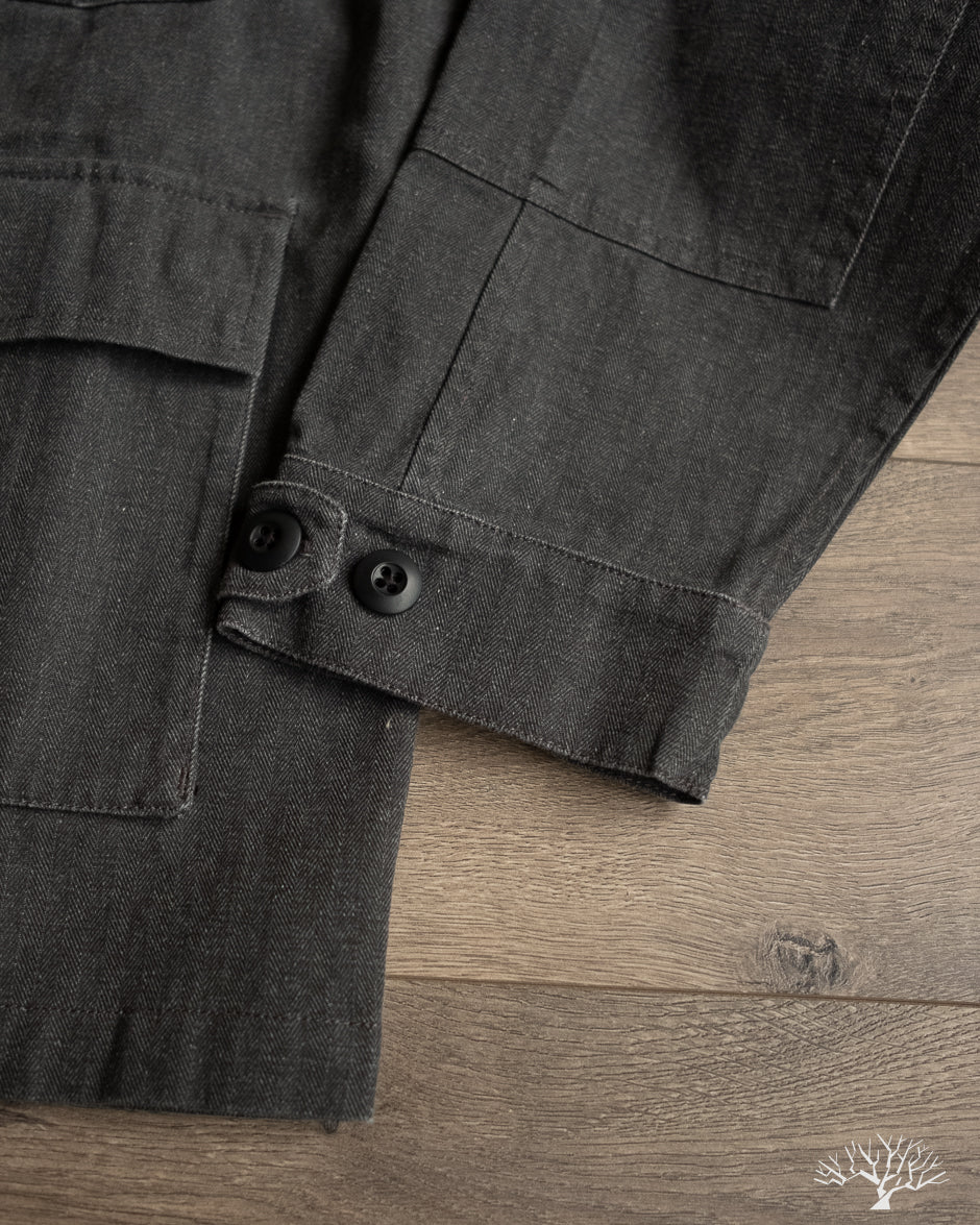 The 3sixteen BDU Jacket is inspired from US Army Battle Dress Uniforms. These are a classic 3sixteen style that takes inspiration from vintage pieces, but finished with modern functionality and details. This BDU Jacket is an excellent layering piece and adds a nice military-meets-modern flair to any outfit. This Charcoal Herringbone Twill fabric has been given a nice stonewash to bring out some of the lighter greys and a slightly worn-in appearance.