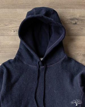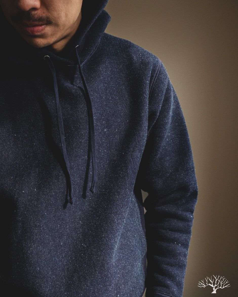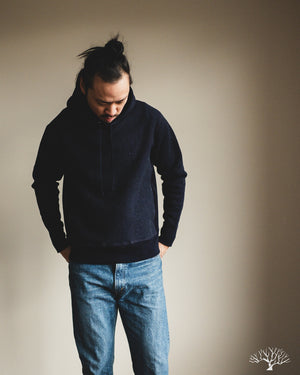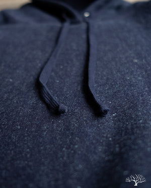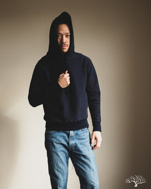 For an indigo-dyed heavyweight hoody, 3sixteen's Heavyweight Pullover in Indigo is an excellent choice for a fleece that is exceptionally soft and has tons of texture and variation to the color. The indigo will slowly fade over time to reveal brighter hues of indigo and blues, with specks of white nep popping through here and there. The 3sixteen Pullover Hoody is a solid hoody for every day wear, but especially for the Fall and Winter where it can serve as an cozy yet sturdy fleece to layer with. Unique to 3sixteen's Pullover Hoody is their hidden gusset pockets along the side seams for a nondescript functionality and cleaner front.