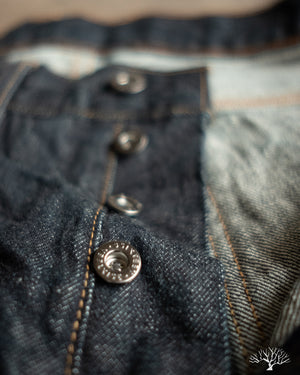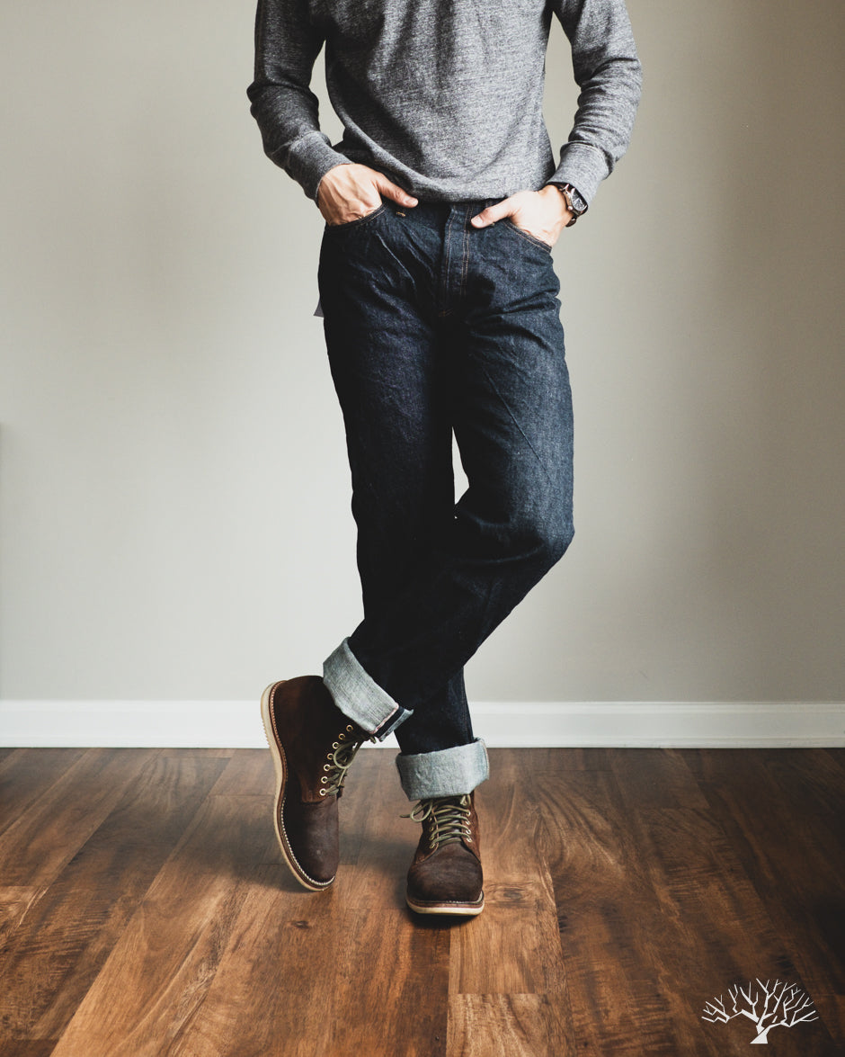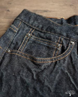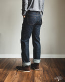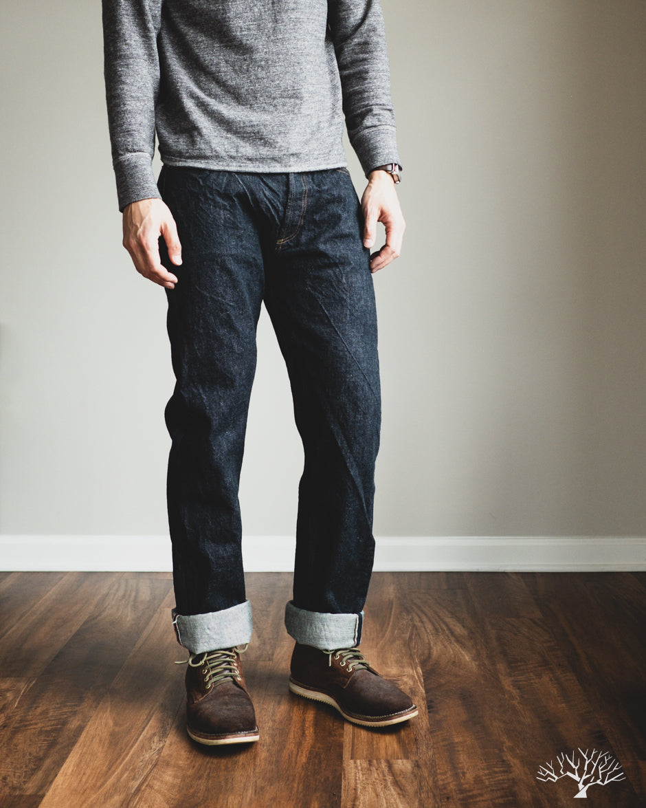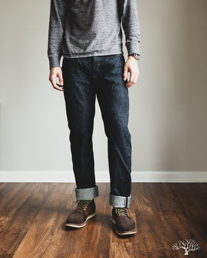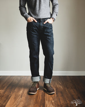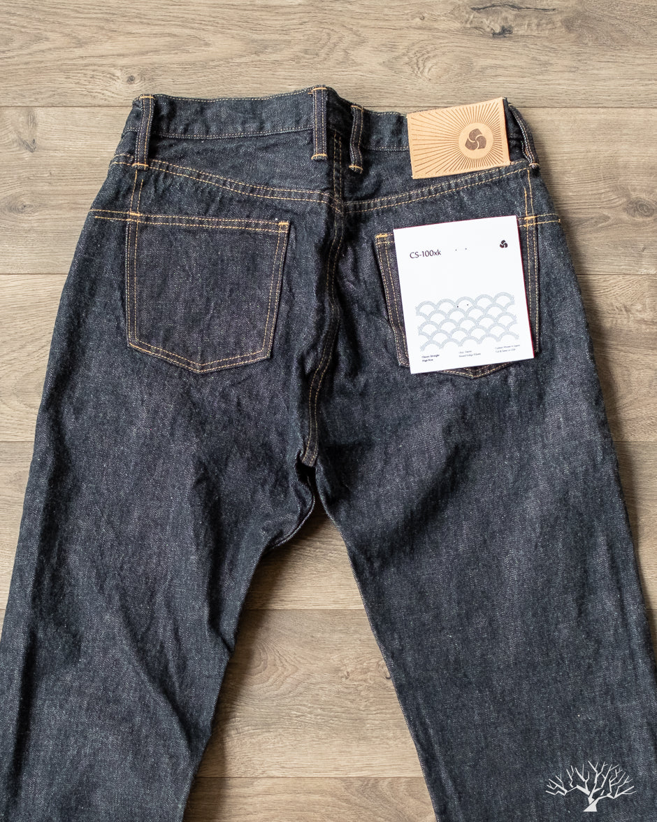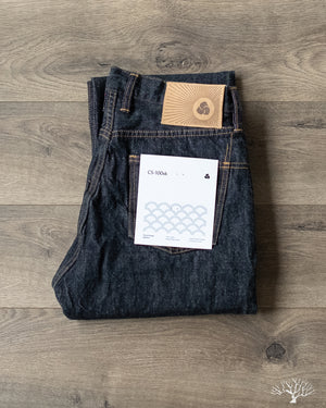 The CS-100xk denim features a classic straight fit in their custom low-tension 14oz indigo selvedge denim that has accentuated texture and character. These come pre-rinsed to remove most shrinkage. The Classic Straight fit is a high rise, roomy top block, and a very slight taper from the knee towards the leg opening. Despite being a straight-cut, these are quite attractive to those looking to transition to some roomier and relaxed cuts, from the usual slim tapered cuts.