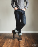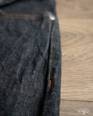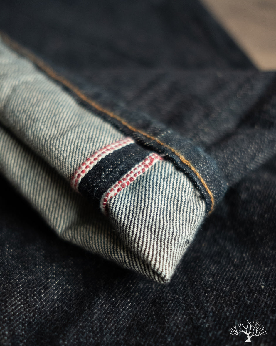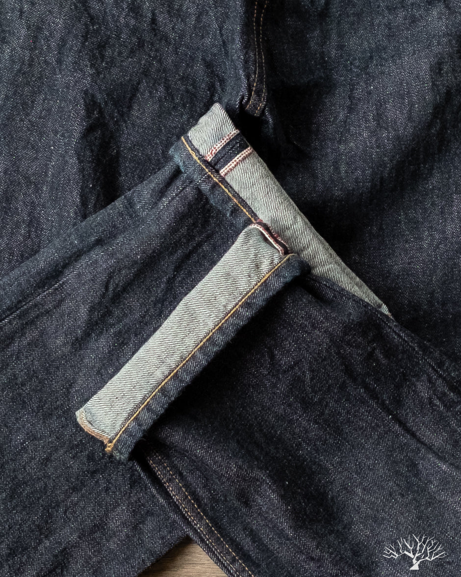 - 14oz raw indigo selvedge denim woven by Kuroki Mills, Okayama, Japan