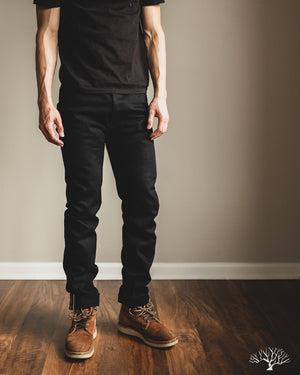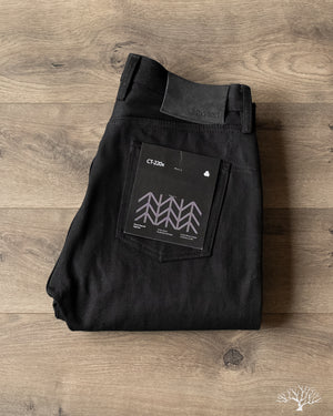 The 3sixteen Double Black Selvedge Denim is an excellent mid-weight dark pair to wear if you're looking for some classic grey fades. The 3sixteen Classic Tapered CT-220x denim comes in a black warp, black weft fabric that is custom-woven for 3sixteen, and will fade to grey over time. The Classic Tapered cut has a roomier upper block with a decent taper from the knee on down.