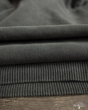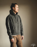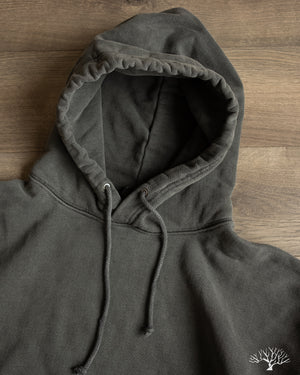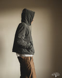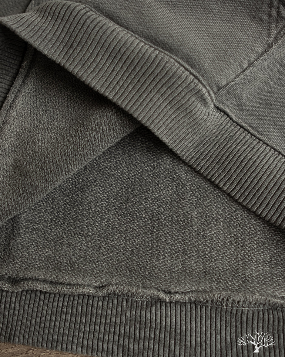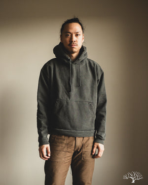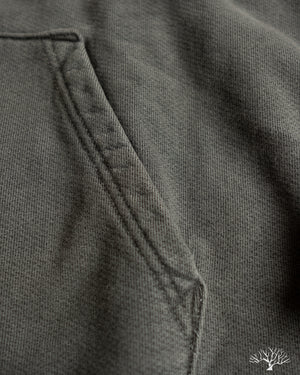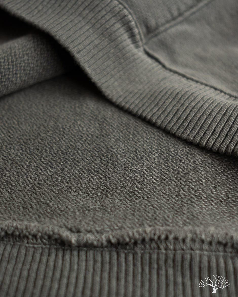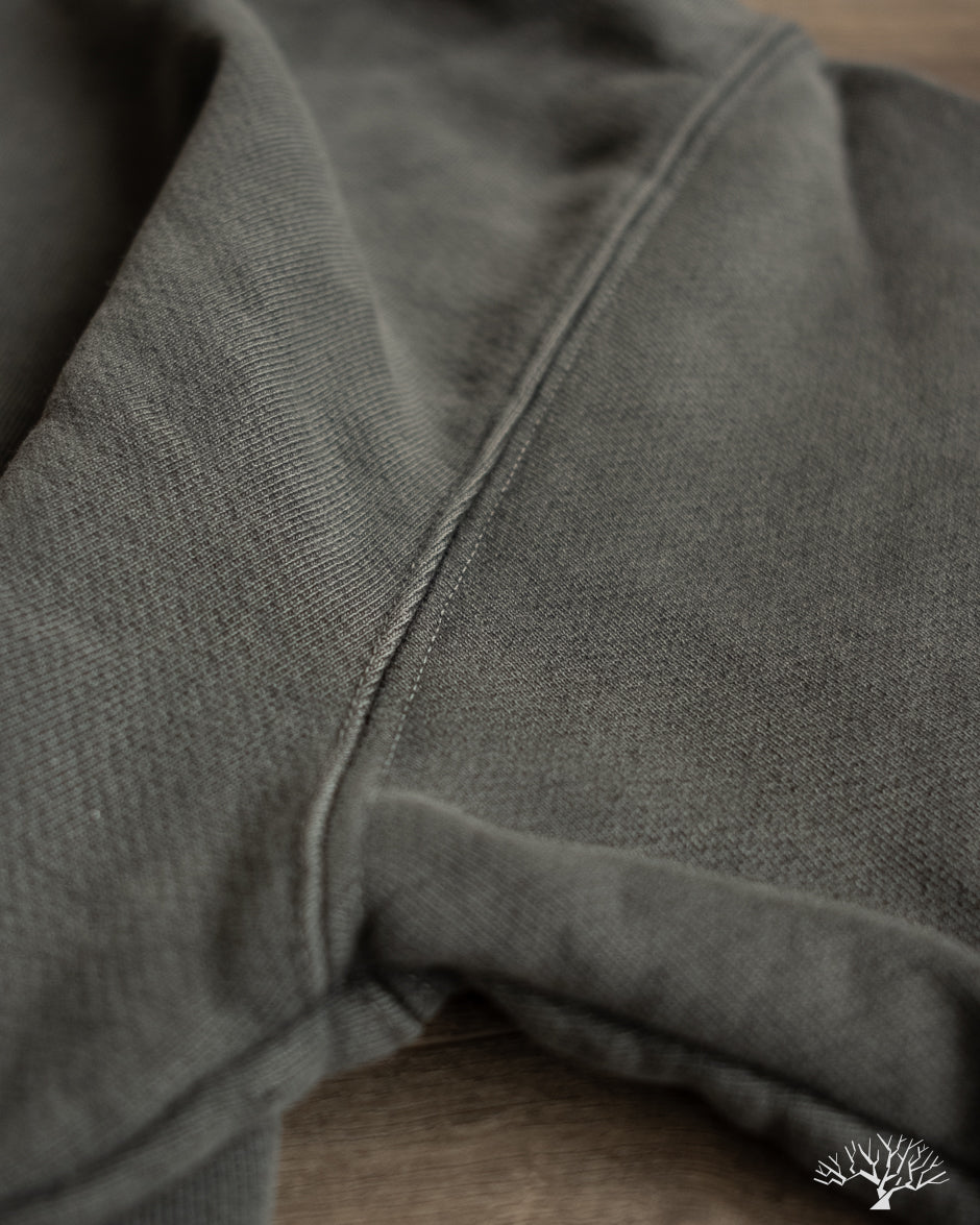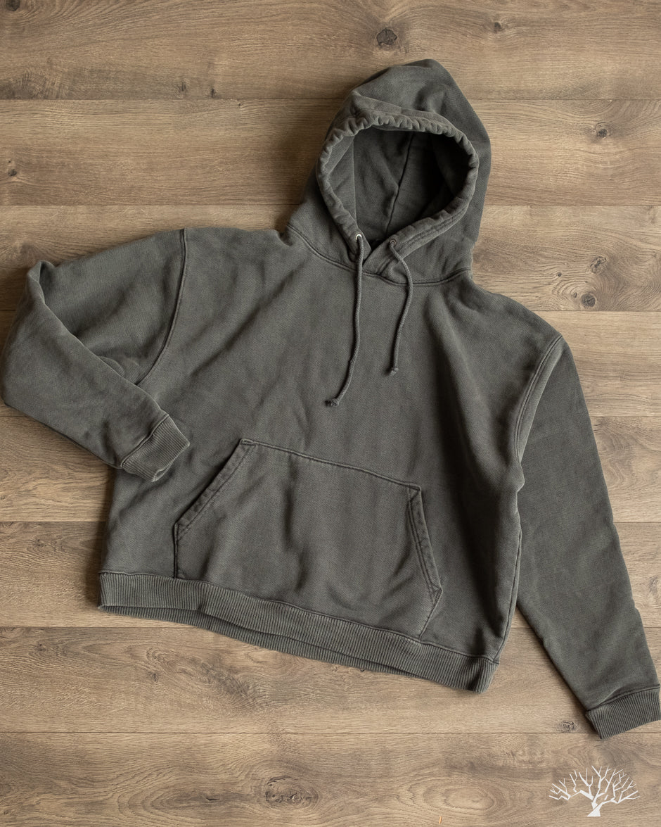 The 3sixteen Ultraweight Pullover Hoodie in Smoke is knit in a 32oz super (ultra) heavyweight French Terry fabric that has been garment dyed for a soft and easy-going piece. These 3sixteen hoodies are cut in a cropped and boxy fit with generous roomy throughout. The Smoke version has a slightly rougher hand compared to the Kombu Green version (which has a more soft and smooth hand).