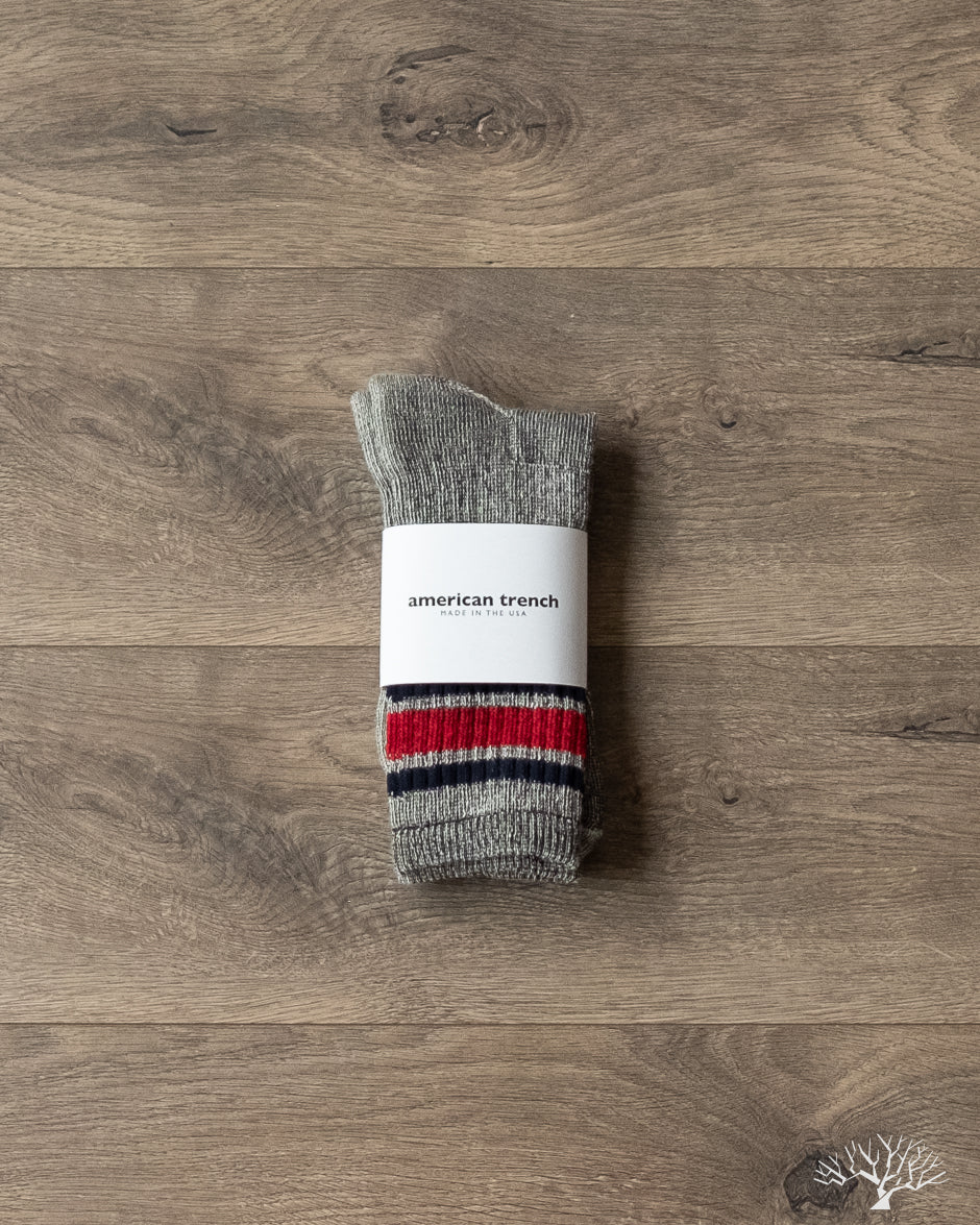 These Grey Merino Activity Socks by American Trench are stand-out casual merino wool socks. These use American-sourced merino wool for a comfortable moisture-wicking pair. Perfect for casual wear in sneakers and boots.