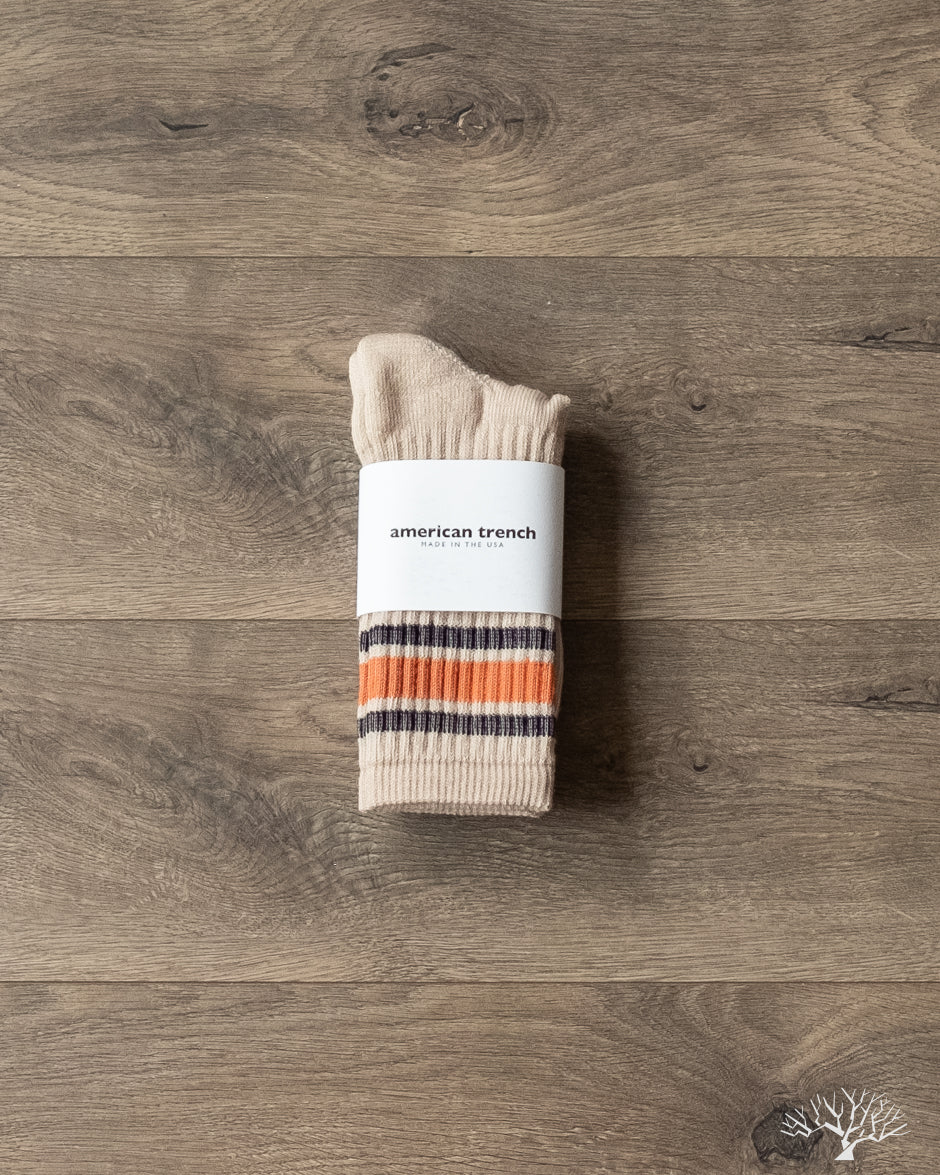 These Tan Merino Activity Socks by American Trench are stand-out casual merino wool socks. These use American-sourced merino wool for a comfortable moisture-wicking pair. Perfect for casual wear in sneakers and boots.