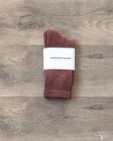 American Trench Supermerino Crew Sock in this Autumn Heather colorway. Using luxurious merino wool yarn imported from Italy, these were meant to be worn for all day comfort and to provide maximum moisture-wicking capabilities. These feature a terry knit footbed that provides cushion in every step. These have a generally thin-to-medium sock feel and thickness.