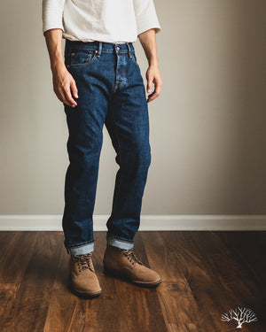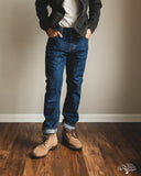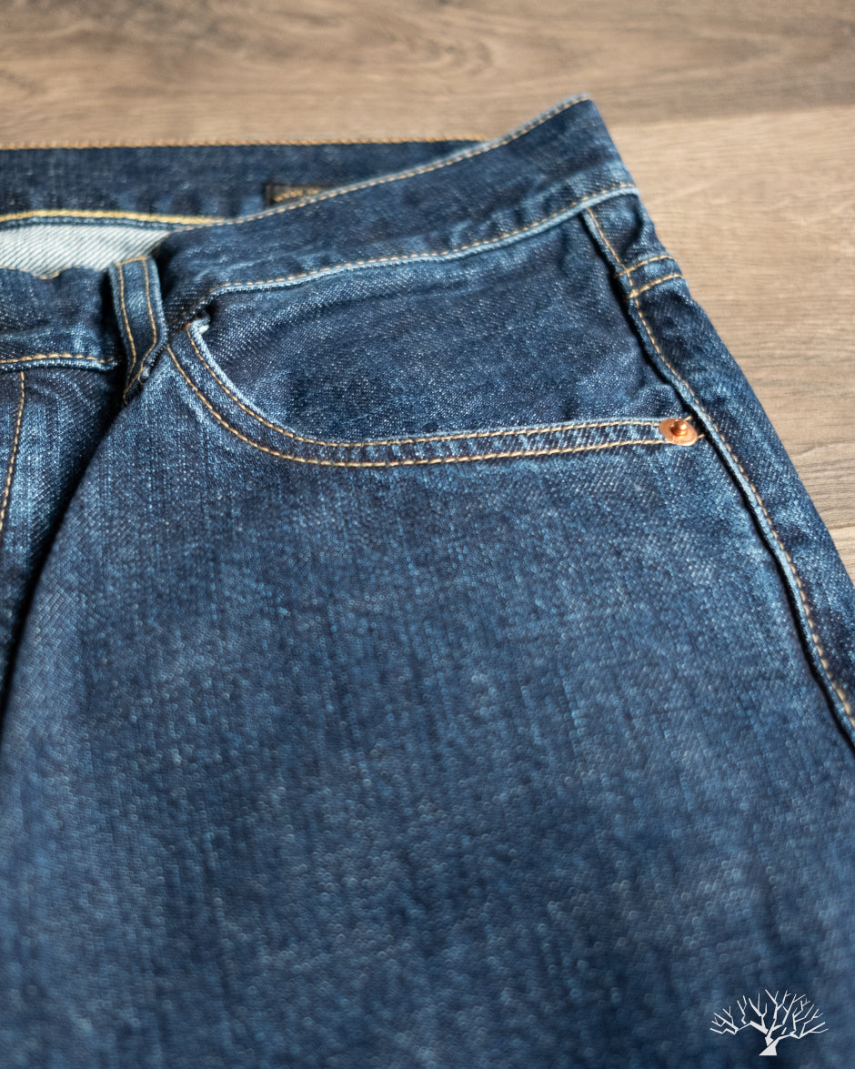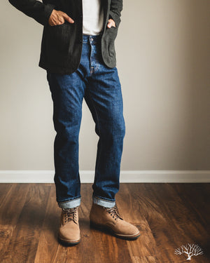 COF Studio M8 Straight Fit, cut with this beautifully 6x washed indigo selvedge denim from Italy. These come in a high-rise, relaxed-straight cut for a classic look that will never go out of style. Due to the wash, these have an excellent soft and broken-in feel with a buttery hand, like denim that you've had for years. This pair was made for those that don't mind that roomier straight cut, while still keeping it real stylish.