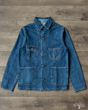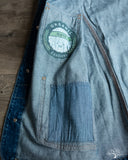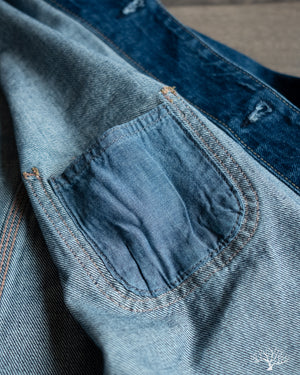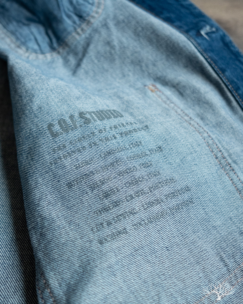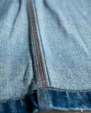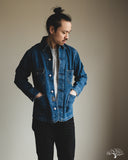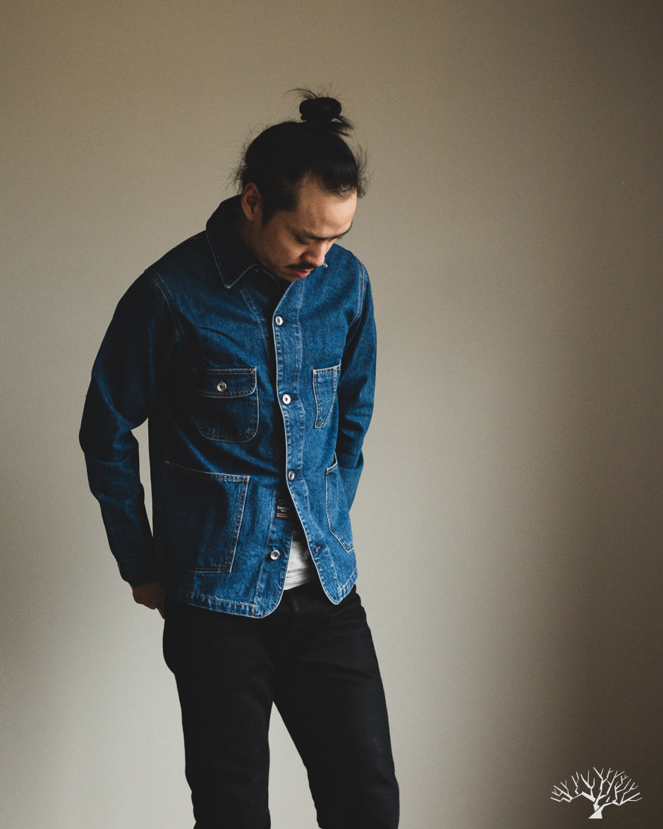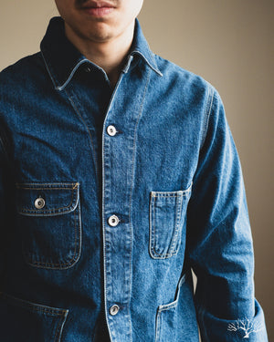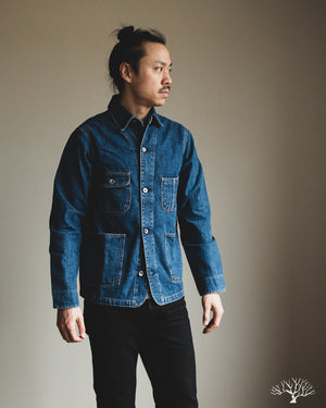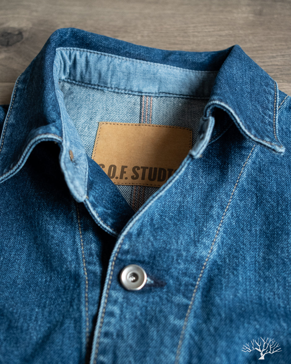 The C.O.F. Studio Railway Jacket comes in a chore coat style length and functionality. This indigo denim from Candiani Mills in Italy has a beautiful wash (6x) for a worn-in appearance and vintage charm. We love this jacket for the functional pockets inside and out, and solid details with its triple-chainstitched side seams and use of organic cotton for the denim. This has a nice modern aesthetic to it with the extended placket that curves into and under the collar.