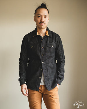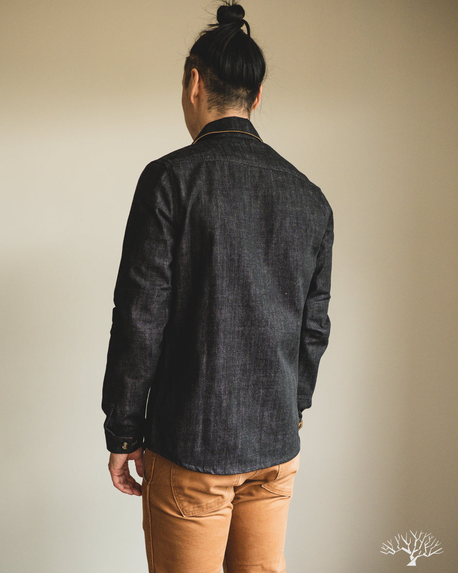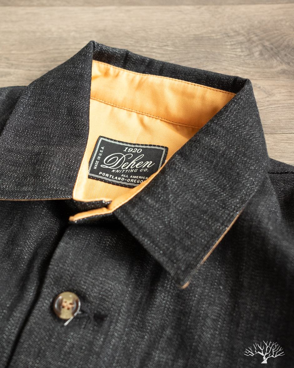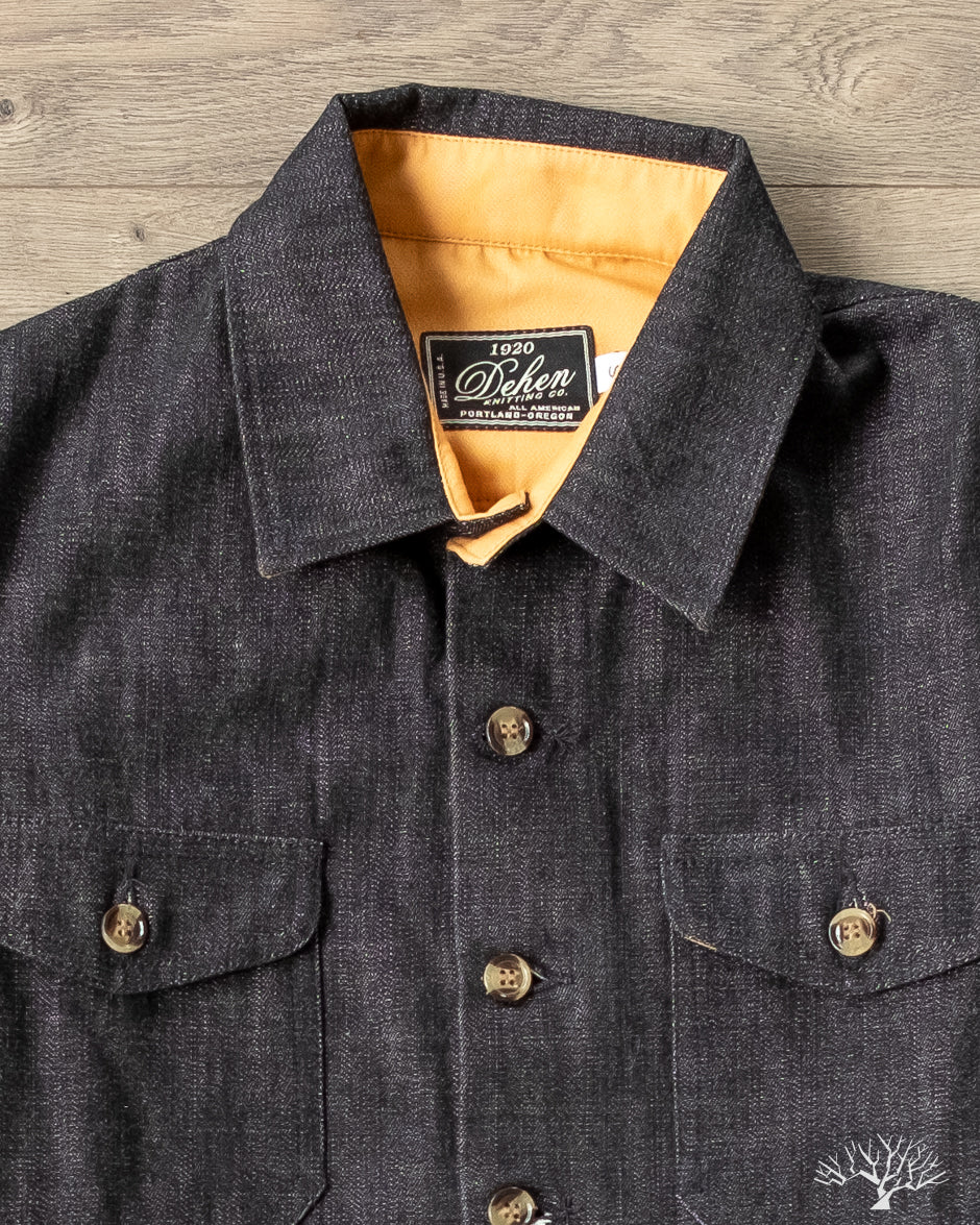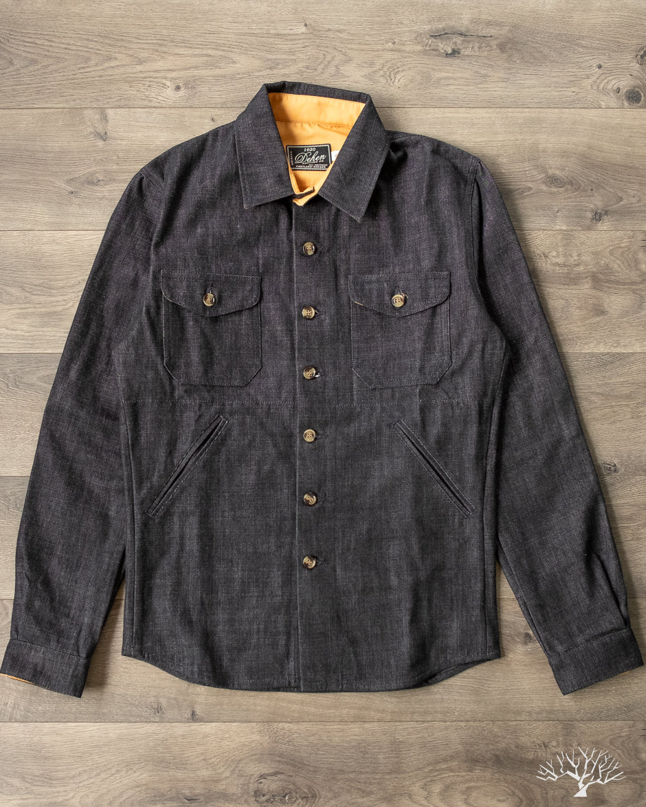 This Dehen 1920 Crissman Overshirt in Slate Denim is an exclusive piece, modified in fit, and made as part of our 5 Year Anniversary Collection. This Crissman features a 100% cotton denim that is not-quite-black and has hints of slate-blue. Pre-rinsed for a slightly washed out look. We opted for tonal stitching button holes and maintained the classic accent tan interior lining. Learn more details through our review here.