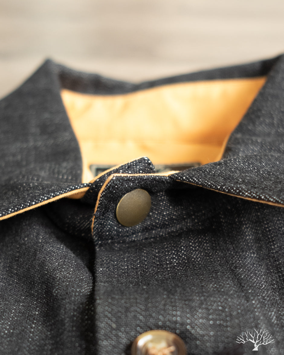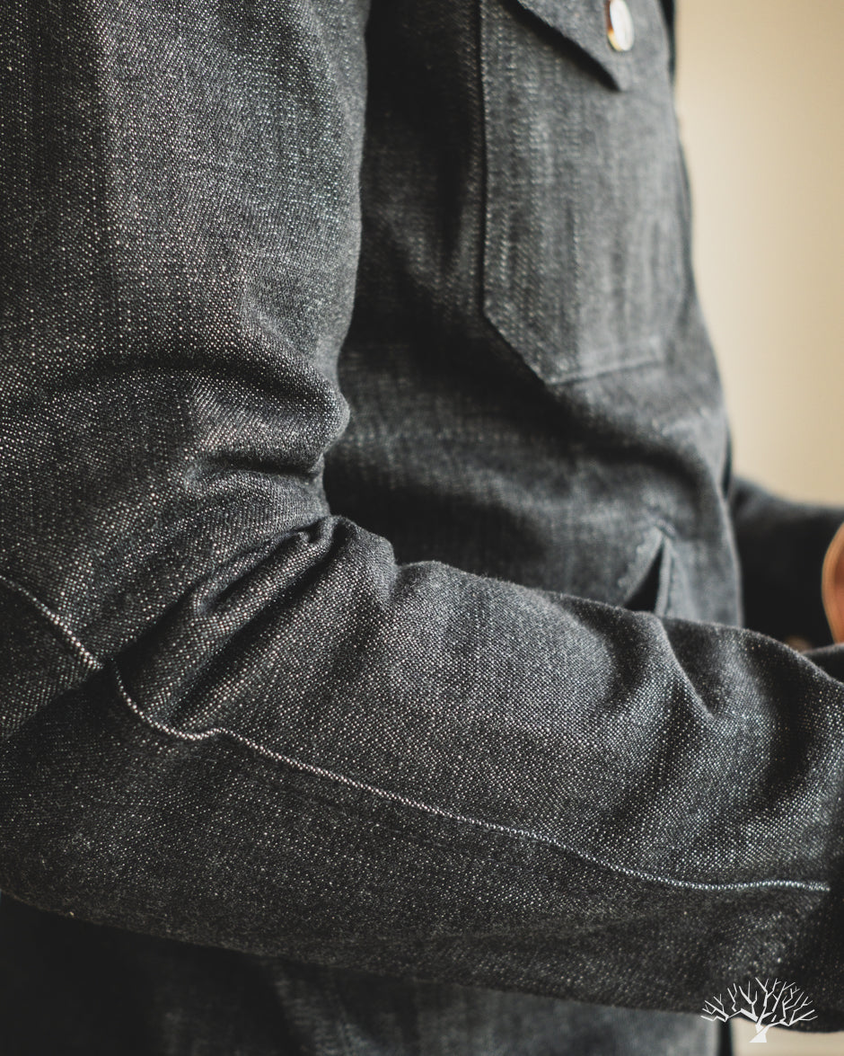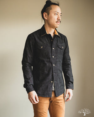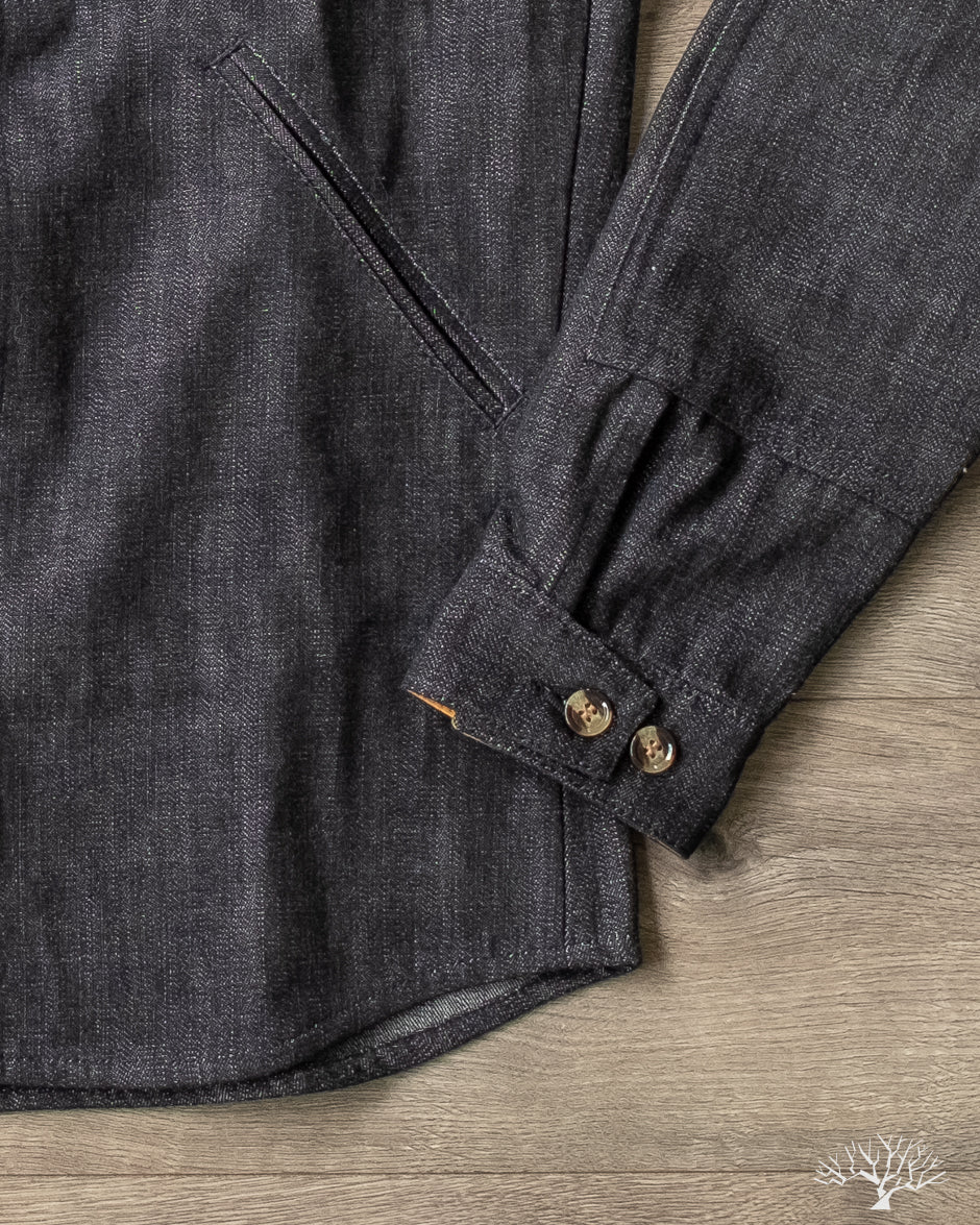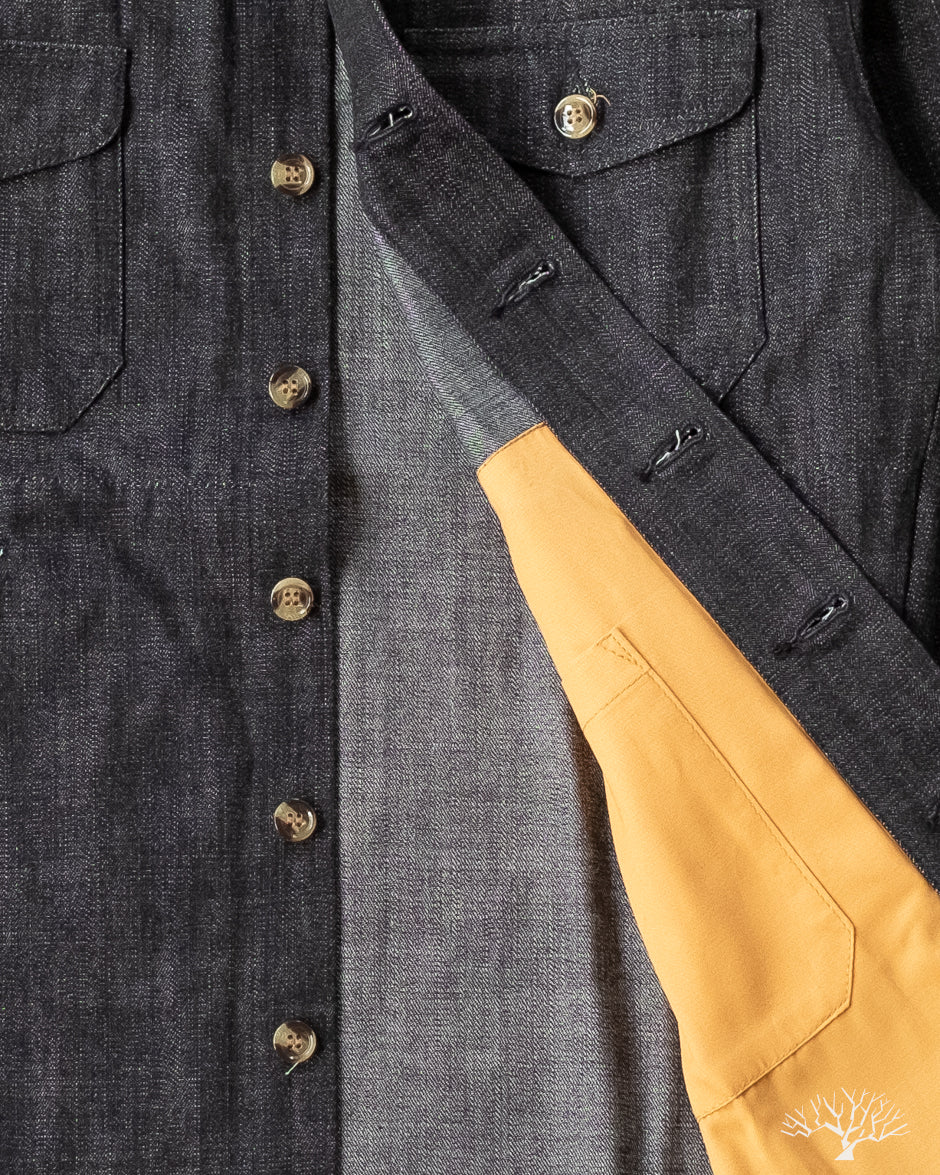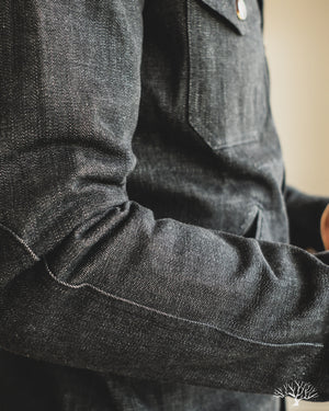 This Dehen 1920 Crissman Overshirt in Slate Denim is an exclusive piece, modified in fit, and made as part of our 5 Year Anniversary Collection. This Crissman features a 100% cotton denim that is not-quite-black and has hints of slate-blue. Pre-rinsed for a slightly washed out look. We opted for tonal stitching button holes and maintained the classic accent tan interior lining. Learn more details through our review here.