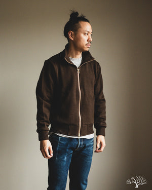 The Dehen 1920 Full-Throttle Moto-Sweater in Brown is the newest style in their lineup of classic sweaters, and an optimal choice if you love the idea of Dehen sweaters and shawls, but need something softer on the skin. These are lined with a silky satin for an easy-on and smooth to the touch interior. Though not true to the original Motorcycle Sweaters of the early 1900s, Dehen has taken the liberty to respond to the demands of a full-zip Moto-Sweater. Built using the same four-end heavyweight jersey knit as on their Shawls, this Moto-Sweater features a heavy duty 2-way brass zipper and reinforced interior elbow patches for functionality. The Full-Throttle Moto Sweater is an excellent tweener for when you don't want to go full shawl, but still want a nice classic sweater to warm things up.