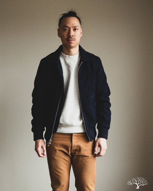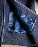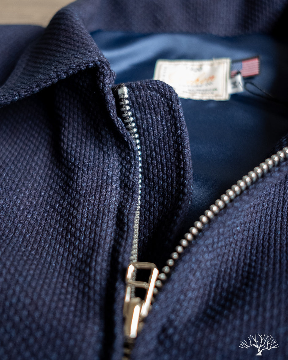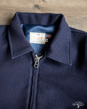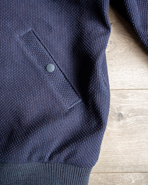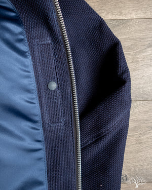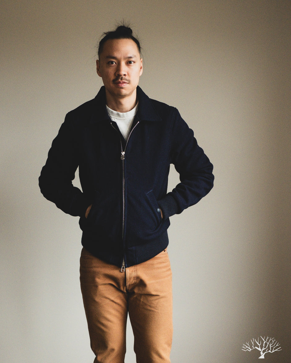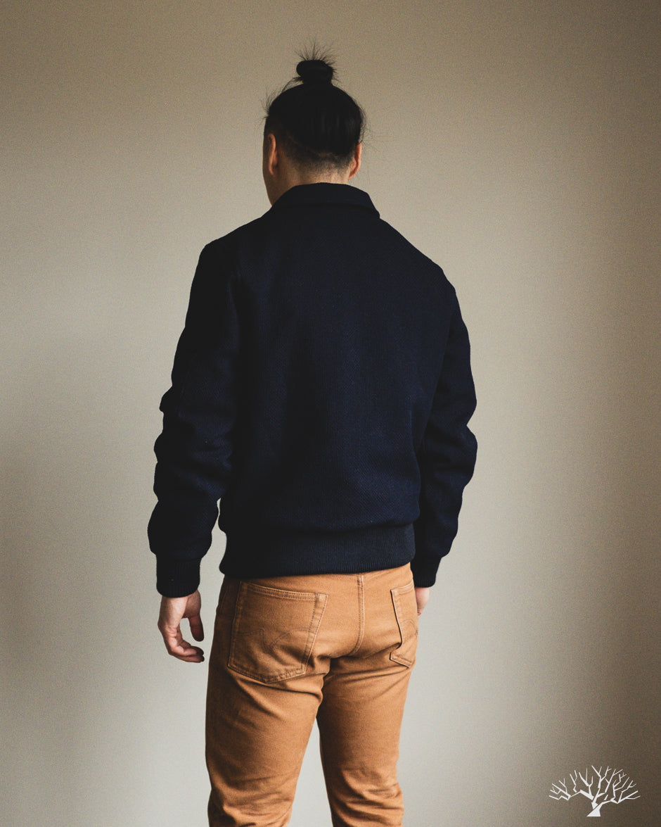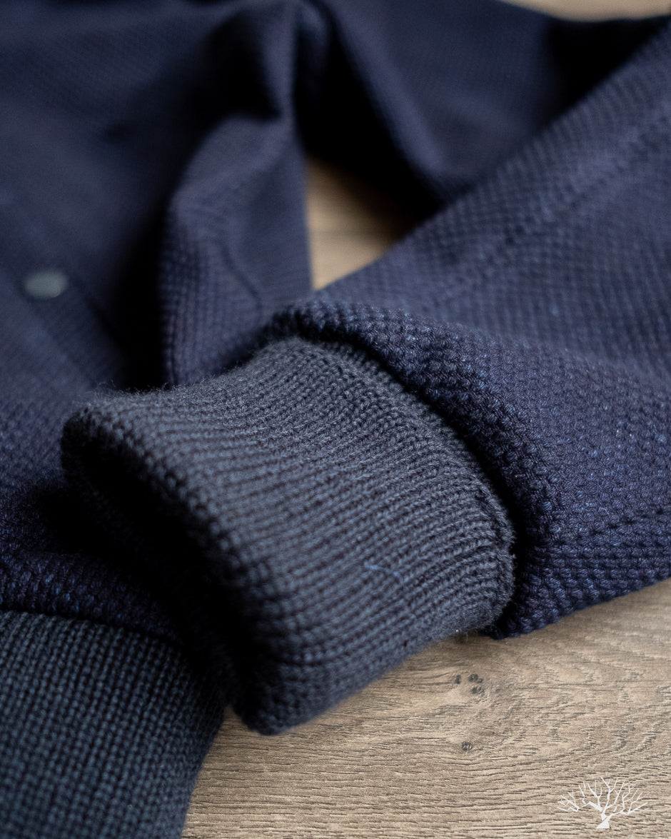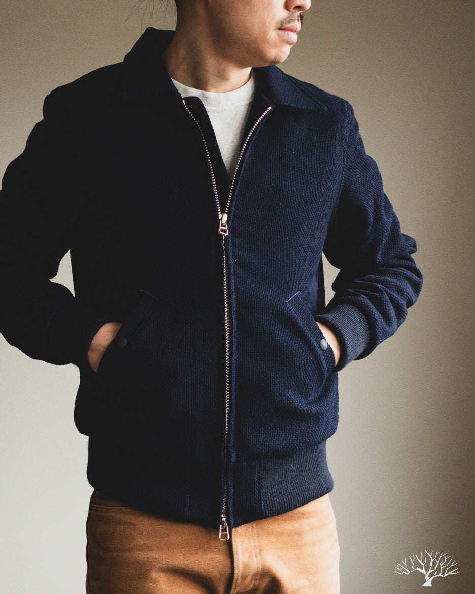 The Dehen 1920 Weekender Jacket in Indigo Sashiko is a new versatile jacket where club meets coach. Built with a heavy duty 12oz Japanese sashiko fabric and accented with Dehen's very own worsted wool on the cuffs and waistband, this will be a solid rotational piece in your wardrobe that will fade beautifully with wear. With the sturdy sashiko fabric and inner lining, this is a quite hefty jacket, despite being part of their Spring collection; this jacket can definitely be a 3-4 season jacket depending on where you live. Note that the indigo will crock/fade with wear, especially early-on (beware of light-colored clothing and furniture).