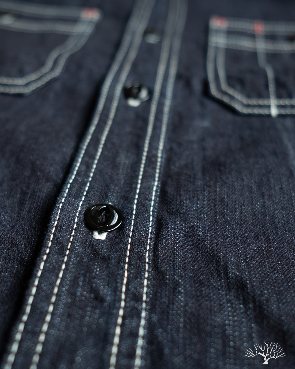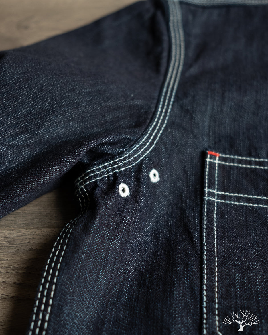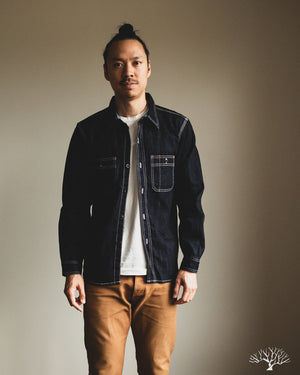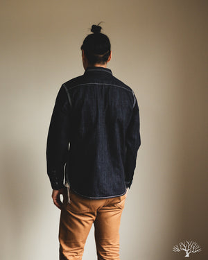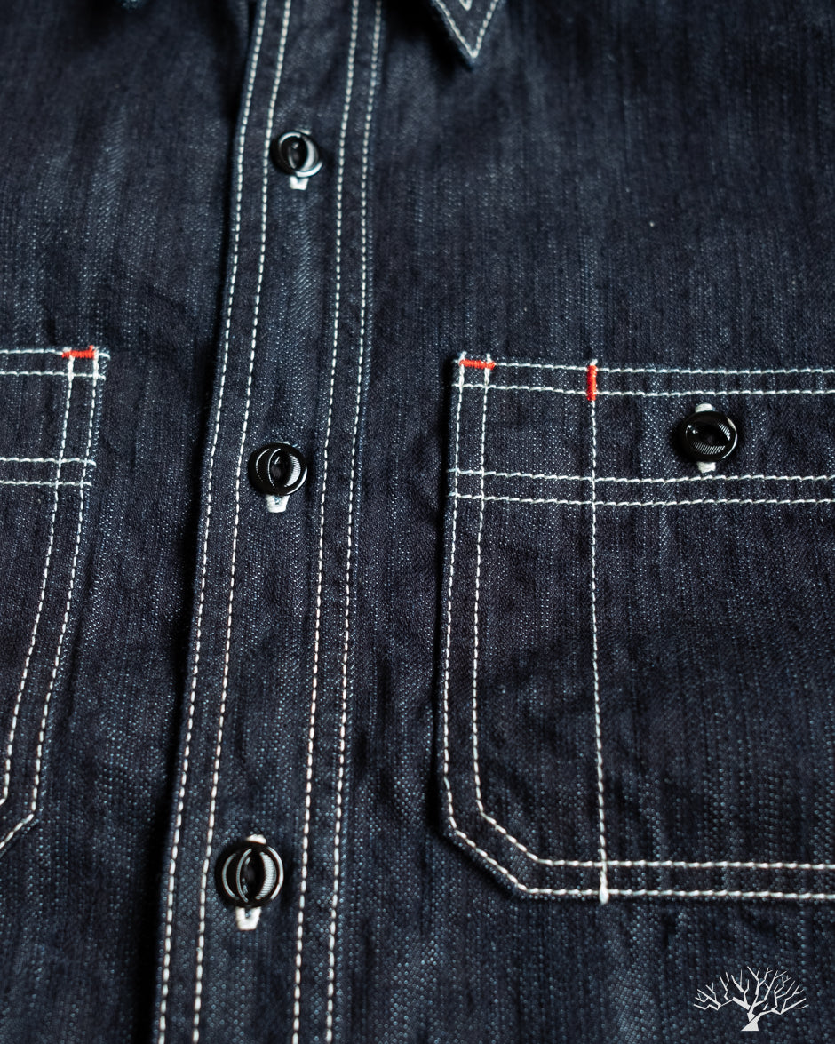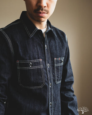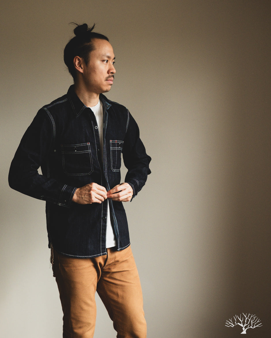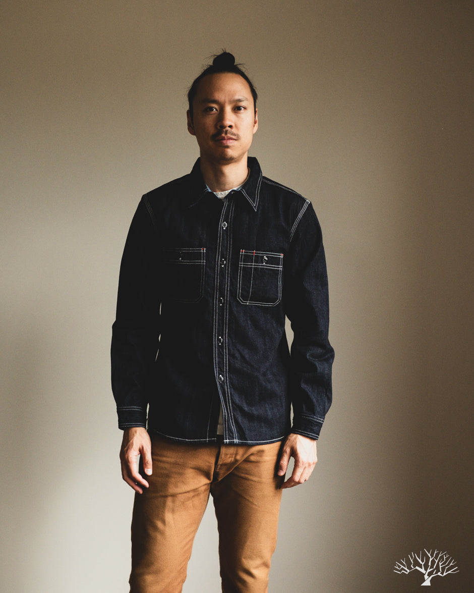 The Flat Head 10oz Denim Work Shirt is an excellent classic take on the denim work shirt. Coming in at a light-to-midweight 10oz denim, this will be an excellent year-round denim shirt to wear in and uniquely fade. The Flat Head details include selvedge plackets and gussets, black painted metal buttons that will chip and fade over time, and ventilation holes under armpits for additional breathability and a true vintage workwear detail.