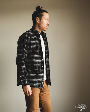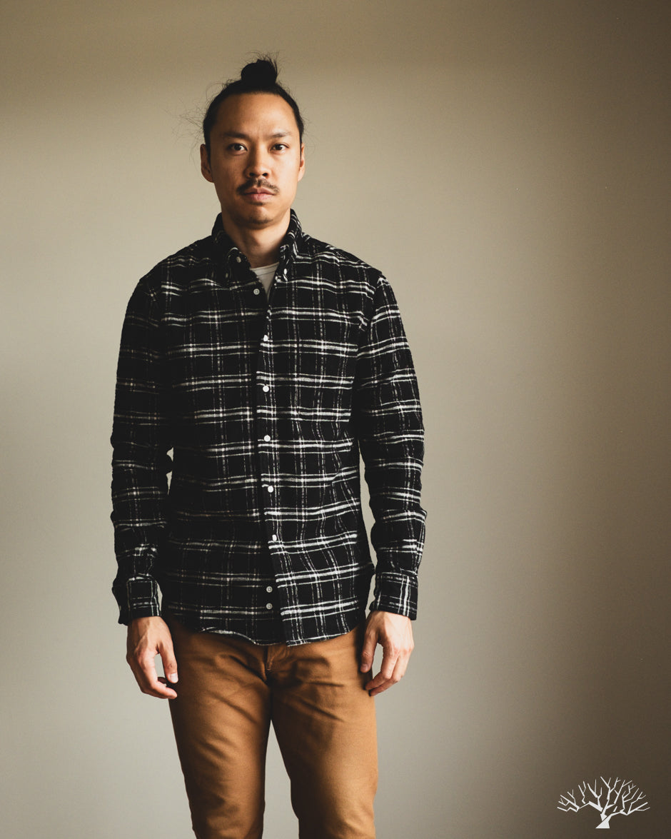 The Gitman Vintage Black Slubbed Twill Check Shirt Flannel features a textured face with a brushed interior that serves as an excellent medium-weight flannel. This is one of Gitman's heaviest flannels with a thick and somewhat rugged feel to the fabric. This slubbed twill flannel will be a solid winter warmer for those cooler evenings.