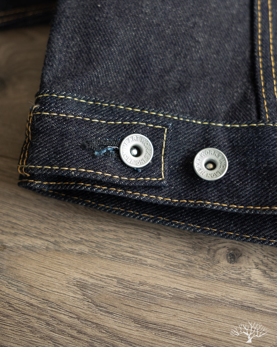 July 2025 Restock: Please note this production run is unsanforized and unwashed and is therefore raw. See tabulated results from Iron Heart's shrinkage tests here. The shrinkage will depend on how hot and vigorously the jacket is washed. Expect approximately 1" to 1.5" shrinkage in the sleeve and body length, with all other dimensions shrinking proportionately. Measurements have been updated with this run.