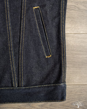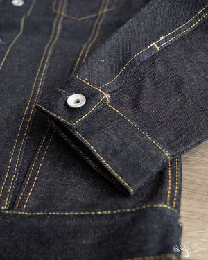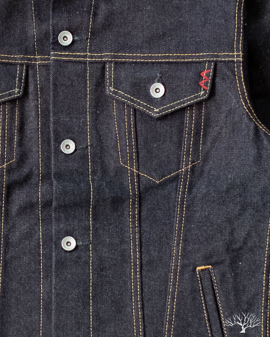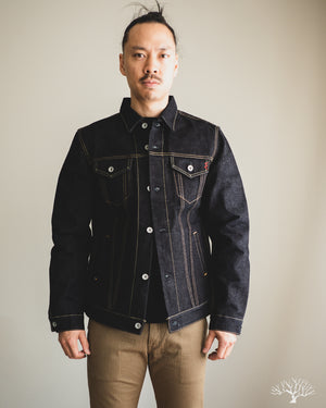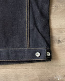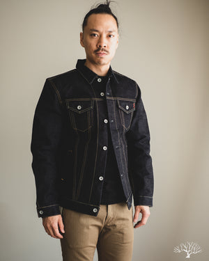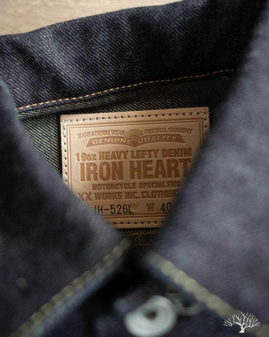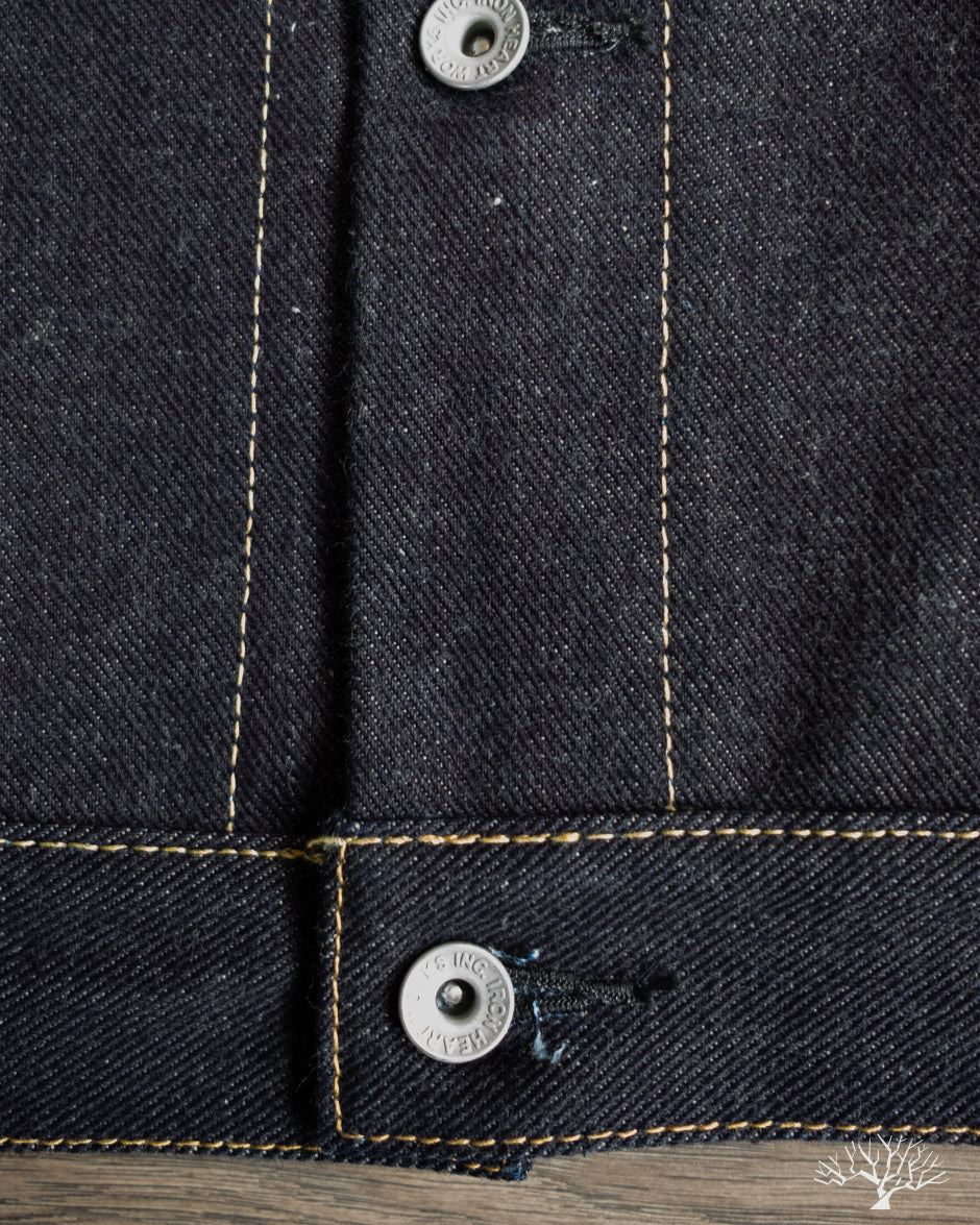 This 19oz Left Hand Twill Type III Denim Jacket was made for the true denim jacket adventurer, one for the ages, and a piece that you could take to the grave. The IH-526L uses a significantly rigid and sturdy selvedge denim that will feel quite wonderful on the body, much like a cardboard box would. However, with time and dedication, like all denim, these will eventually give in and mold to you as you wear it. This 19oz "lefty" denim has all the characteristics needed to produce some incredible fades and whiskering. All it needs is a formidable wearer to take up the challenge.