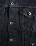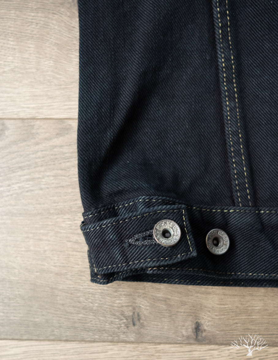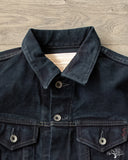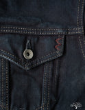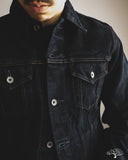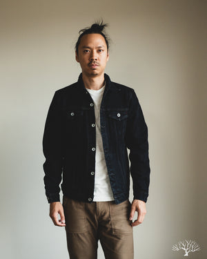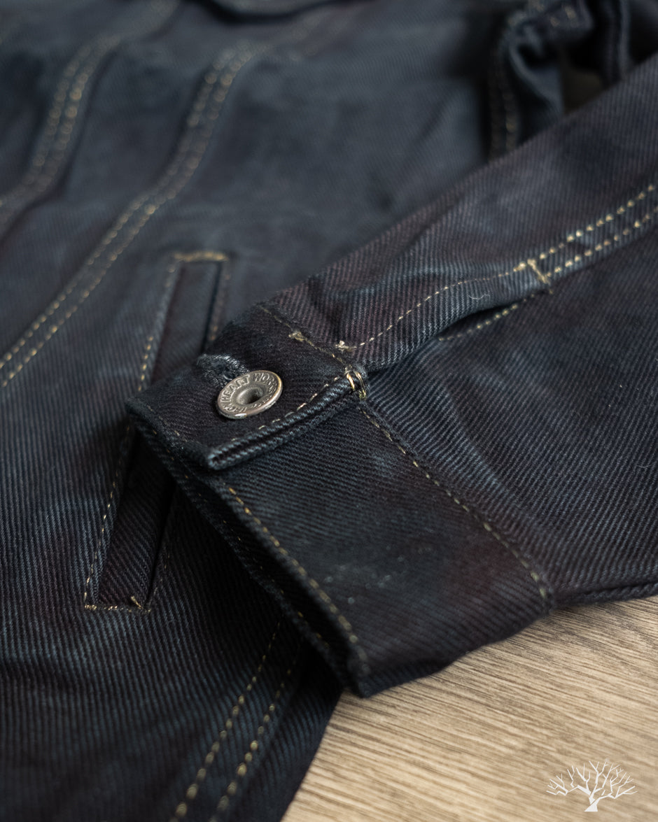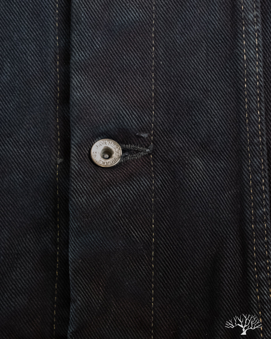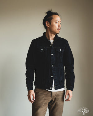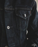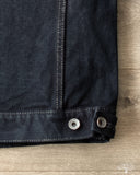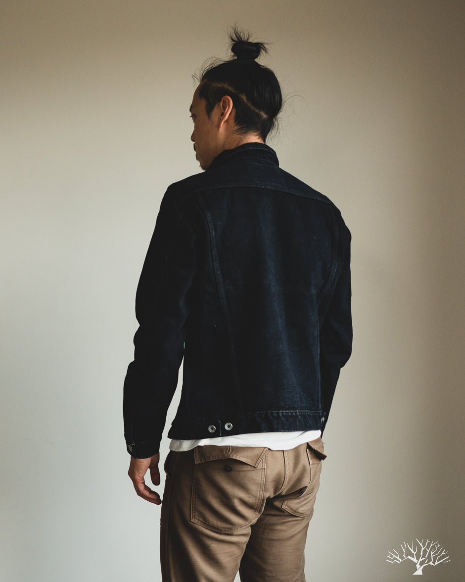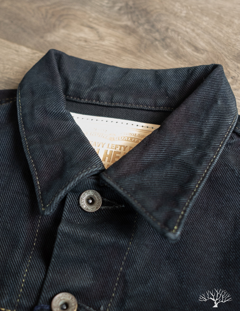 This overdyed version of the 19oz Left Hand Twill Type III Denim Jacket was made for the true denim jacket adventurer, a piece that you could take to the grave. This overdyed version takes the original rigid and sturdy selvedge denim, and gives it a proper black sulphur overdye that darkens it considerably to a very deep black-indigo. The overdye process softens it to some degree, but make no mistake that this is still a heavy duty denim jacket. This 19oz "lefty" denim has all the characteristics needed to produce some incredible fades and whiskering. All it needs is a formidable wearer to take up the challenge.