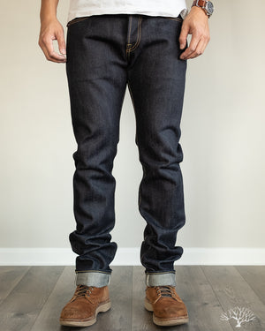 Iron Heart's 555 cut has a medium rise with one of their more aggressively slimmed down legs with a narrow opening. These will work nicely for those who don't have slim to moderate thighs and like their jeans to follow the taper of their legs.
