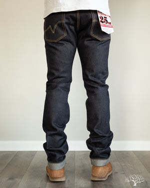 Iron Heart's flagship 25oz Extra Heavyweight Denim is not for the faint of heart, but for the true denim enthusiast. For those who like punching themselves in the crotch and bruising up their fingers trying to put on a pair of denim, this one is a sure-fire winner to satiate that desire. Okay, it's not that bad. But seriously this 25oz pair will test your limits and your dedication to only the sickest fades available. Endure, and you'll be rewarded with a soft and comfortable extra heavy denim, relatively speaking.
