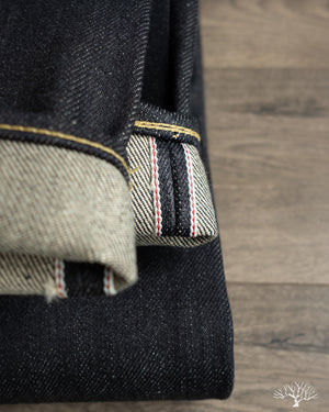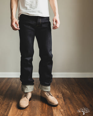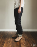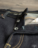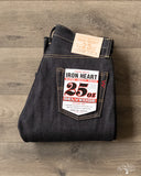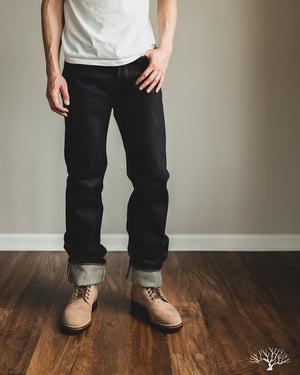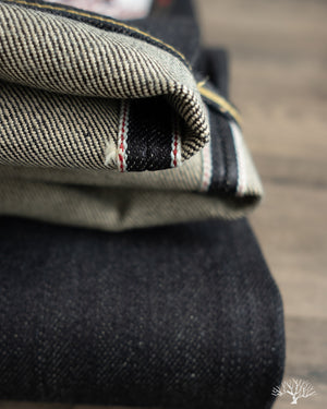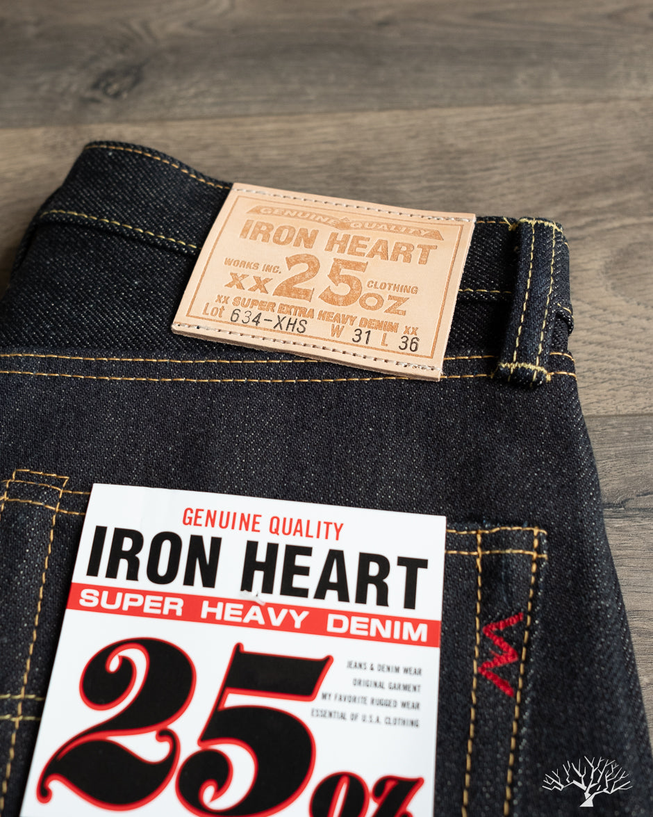 Iron Heart's Extra Heavy Selvedge 25oz Denim in their classic straight cut silhouette. Cut and sewn in Japan, and made for those looking for the ultimate raw denim experience, these will certainly test your resolve. From the initial fitting, your fingers will likely be sore, and you'll probably have some red marks on your body from the cardboard fabric pinching into your skin. Get past all that, and you'll be richly rewarded with a broken-in pair that will age and fade like no other.