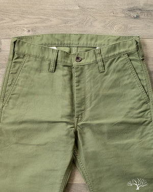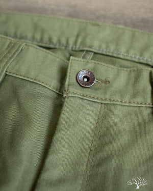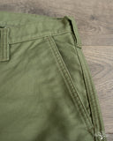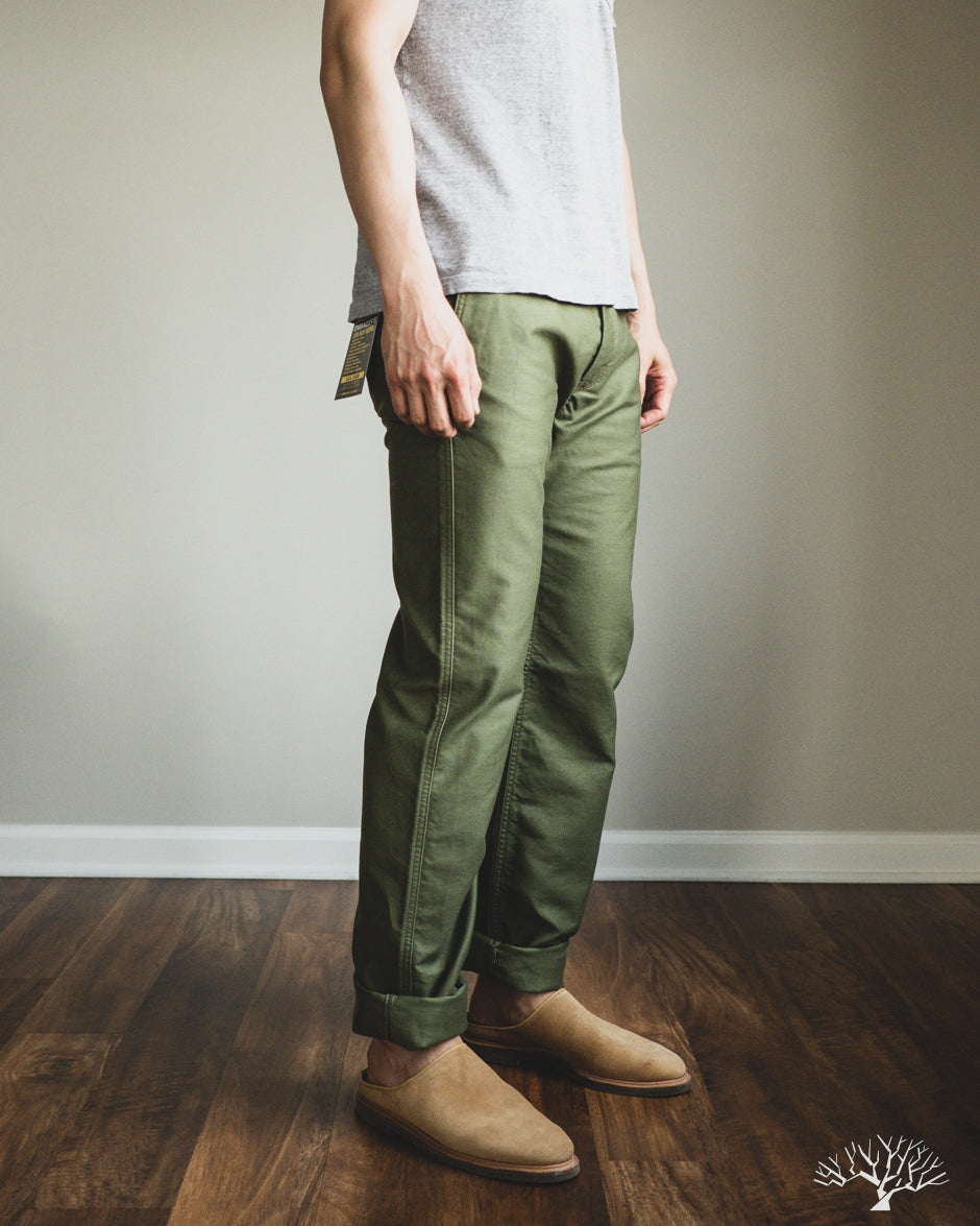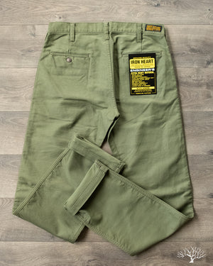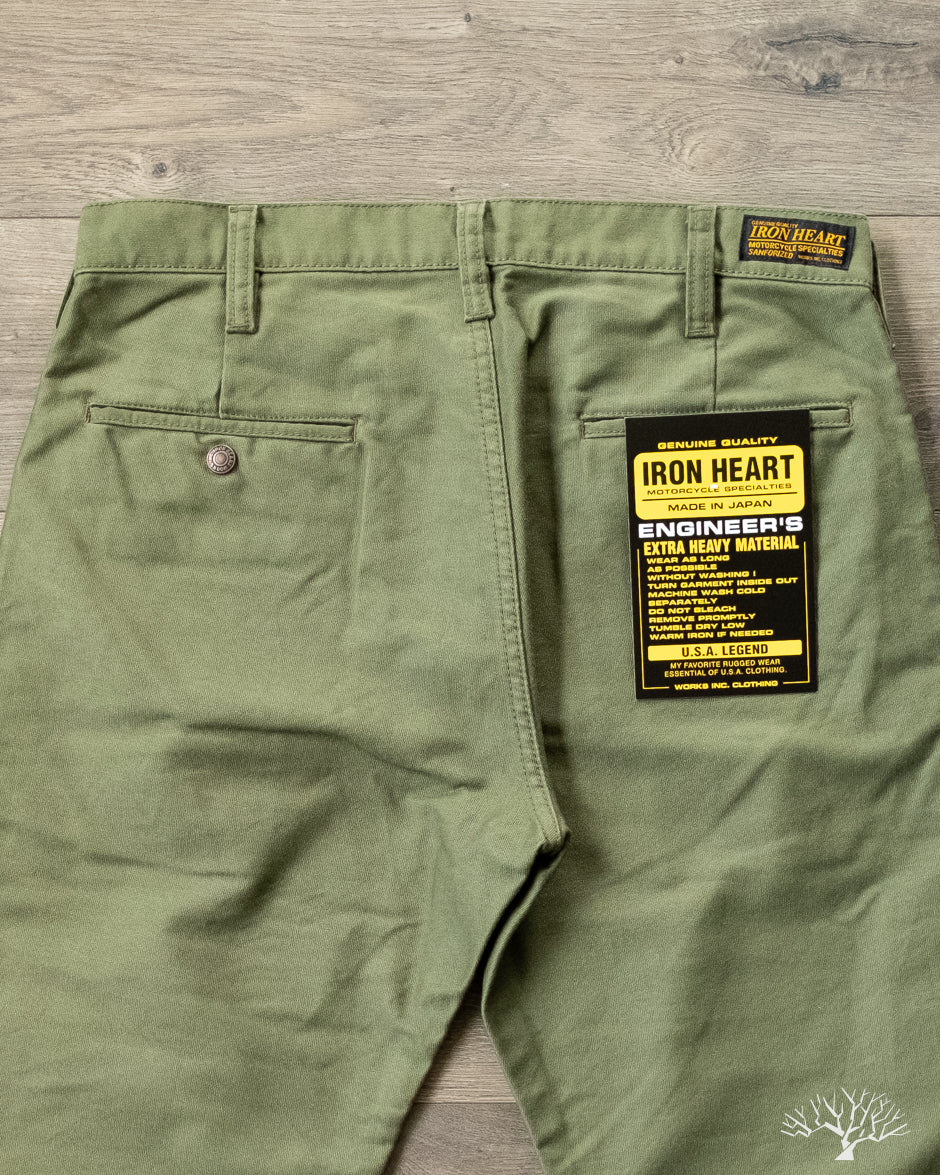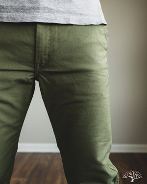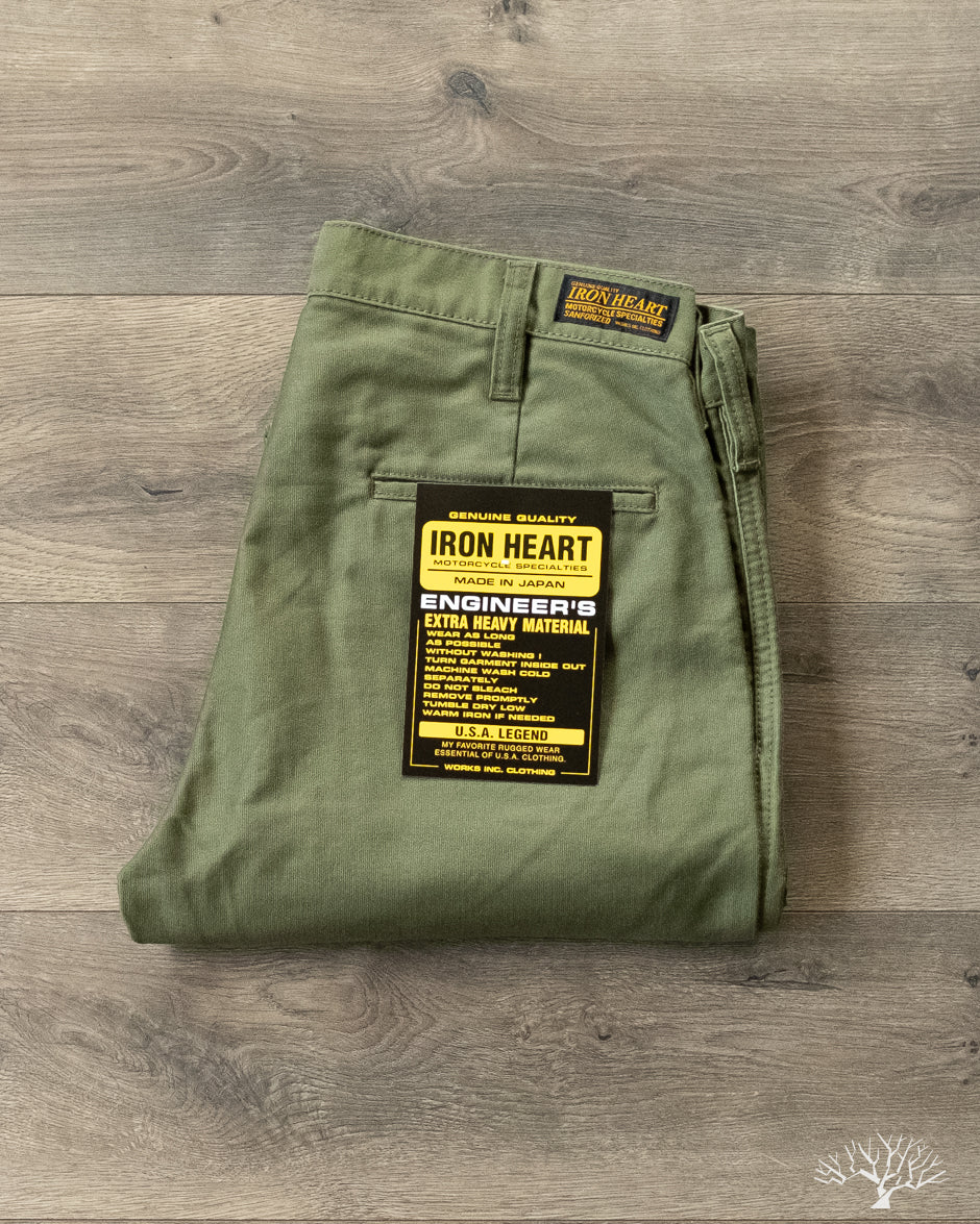 Iron Heart's 11oz Cotton Whipcord Work Pants in Olive come in a medium rise classic straight cut, a perfect pair that will transcend the test of time. The 11oz whipcord fabric is durable and heavy duty, yet with a slight sheen and smoothness to the touch. Iron Heart has designed this pair with a tightly woven cotton twill to make it extra hard-wearing and resilient to scratches and improved wind resistance.
