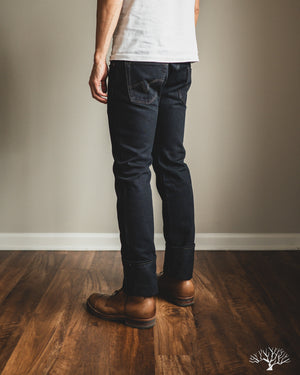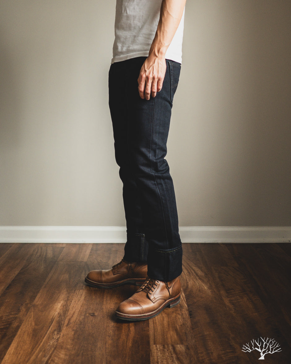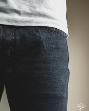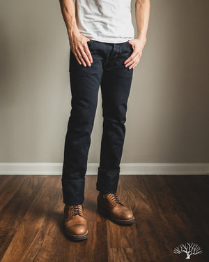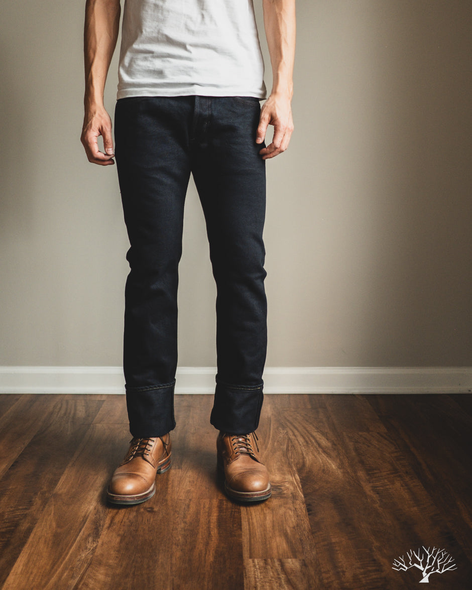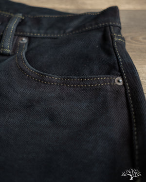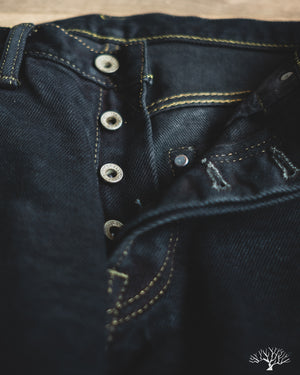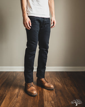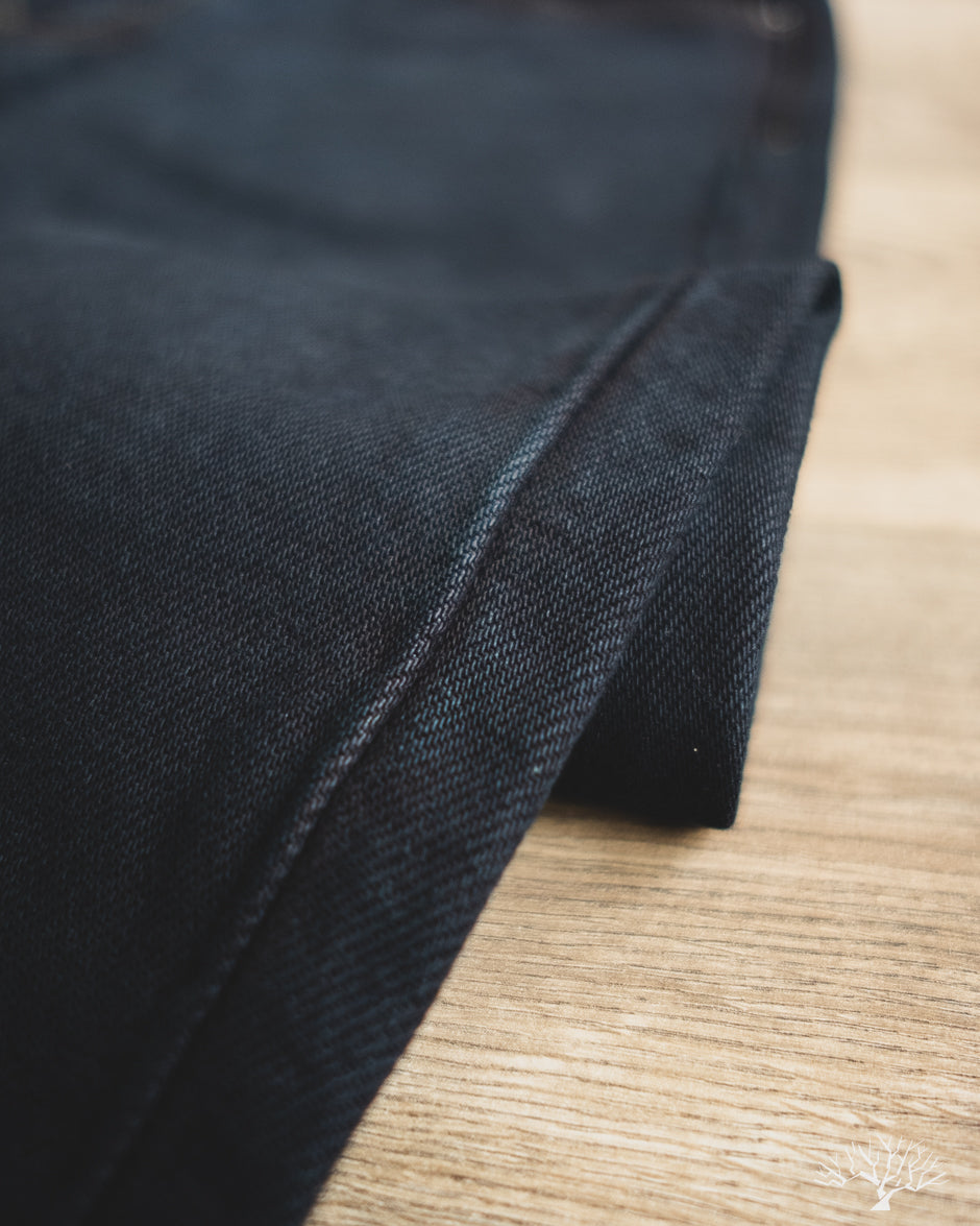 Looking for a dark pair that isn't straight-black, yet still versatile? The Iron Heart IH-777S-21od is the one to add to your denim rotation. Using their flagship 21oz indigo selvedge denim, Iron Heart has aggressively dyed this with a black sulphur dye, resulting in a dark fabric with shades of indigo, similar to how some double indigo fabrics look. The pair does shed the overdye quite a bit, and will lighten up over time to reveal more of the indigo underneath.