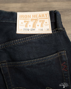 Note: These are sanforized, one-washed, and overdyed, so expect no shrinkage. Denim will stretch about 1" in the waist after breaking in. For those who like slim fitting jeans, upon first wear the top button should be snug and possibly hard to button-up. Due to the overdye process, all shrinkage is accounted for and results in a slightly slimmer/tighter cut of the 777 compared to the regular non-overdyed 21oz flagship denim.