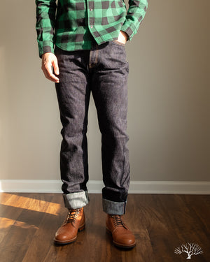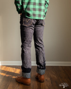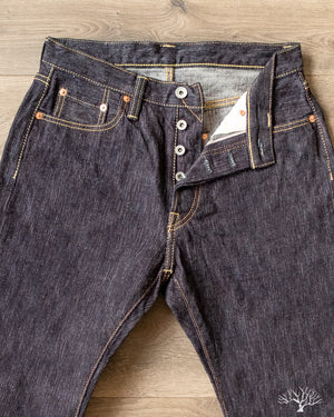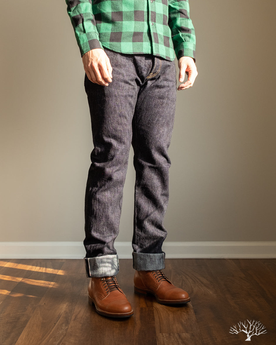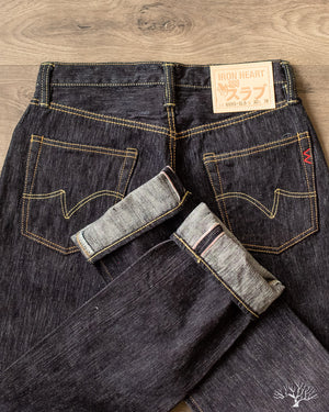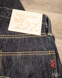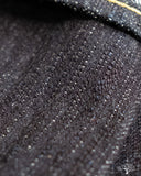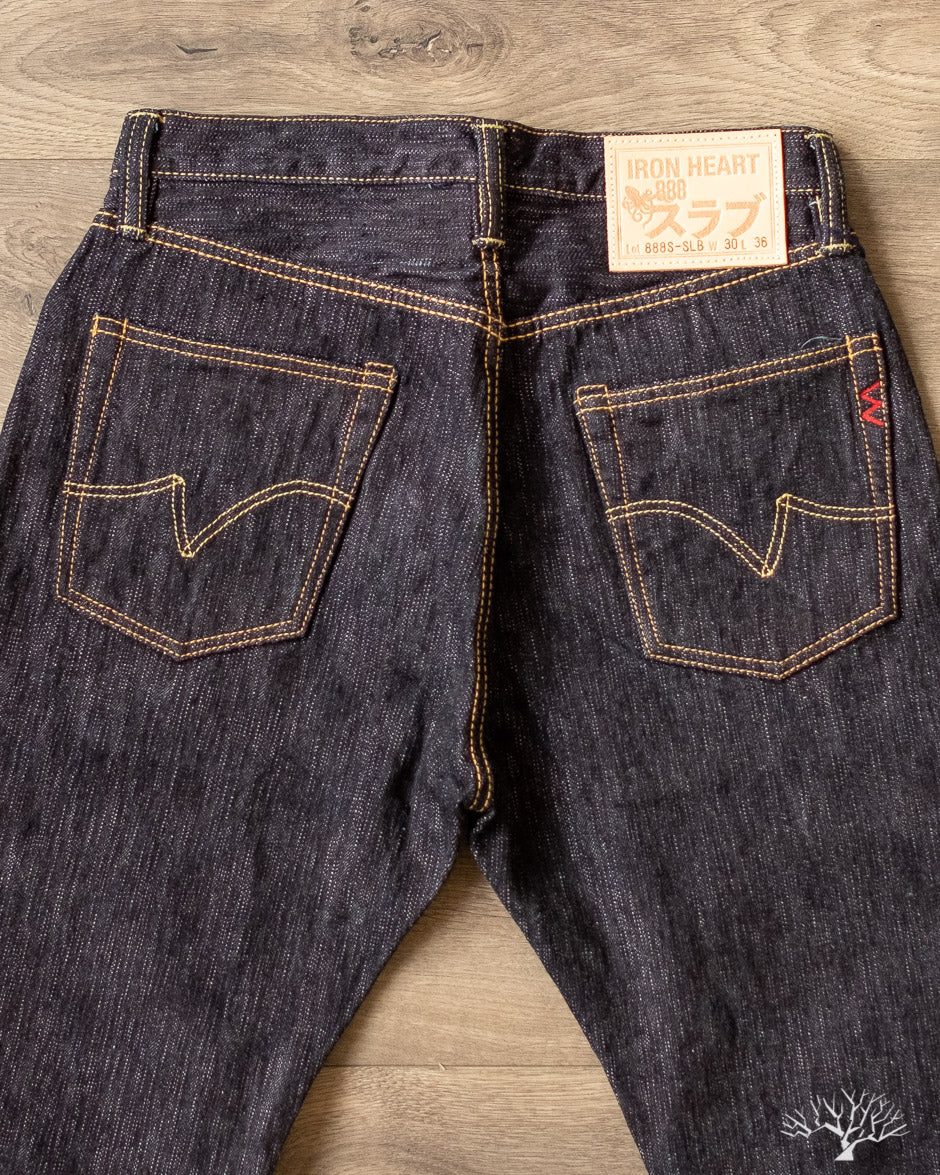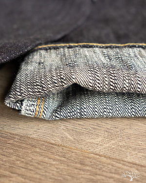 Feast your eyes on this new fabric from Iron Heart, a slubby mid-weight denim that has tons of texture and exudes character. This 16oz slubby selvedge denim is quite different from Iron Heart's typical line-up with a textured hand that is irregular and a vertical streaking appearance. The interior of the fabric is even more crazy, appearing like a diagonal zig-zag pattern. With multiple washes and significant wear, these will fade to reveal more electric blues and the white cores over time.