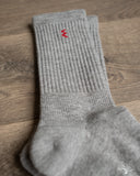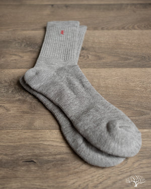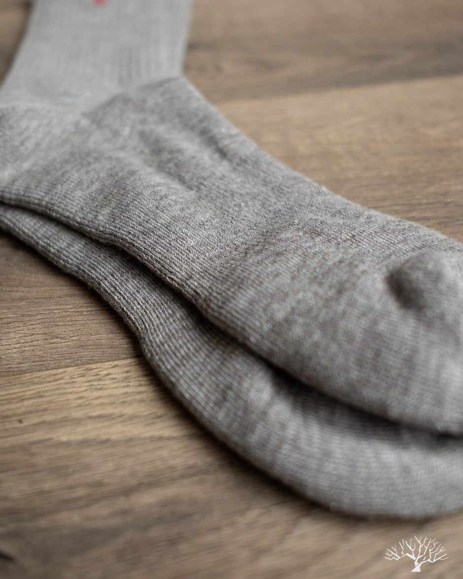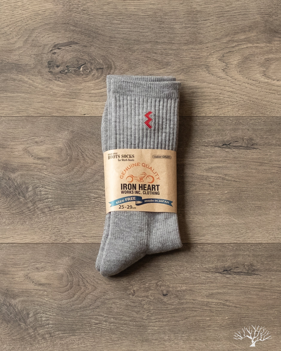 These Iron Heart Work Boot Socks in Grey are one of our favorite no-frills boot socks with a simple Iron Heart embroidered "W" at the calf. These are excellent socks that are hardwearing, double cushioned heel, sole, and toe for extra durability and comfort. And even with multiple washes and wears, these are hold up well with minimal pilling. A double rib constructions makes sure these don't slip as you wear them throughout your day.