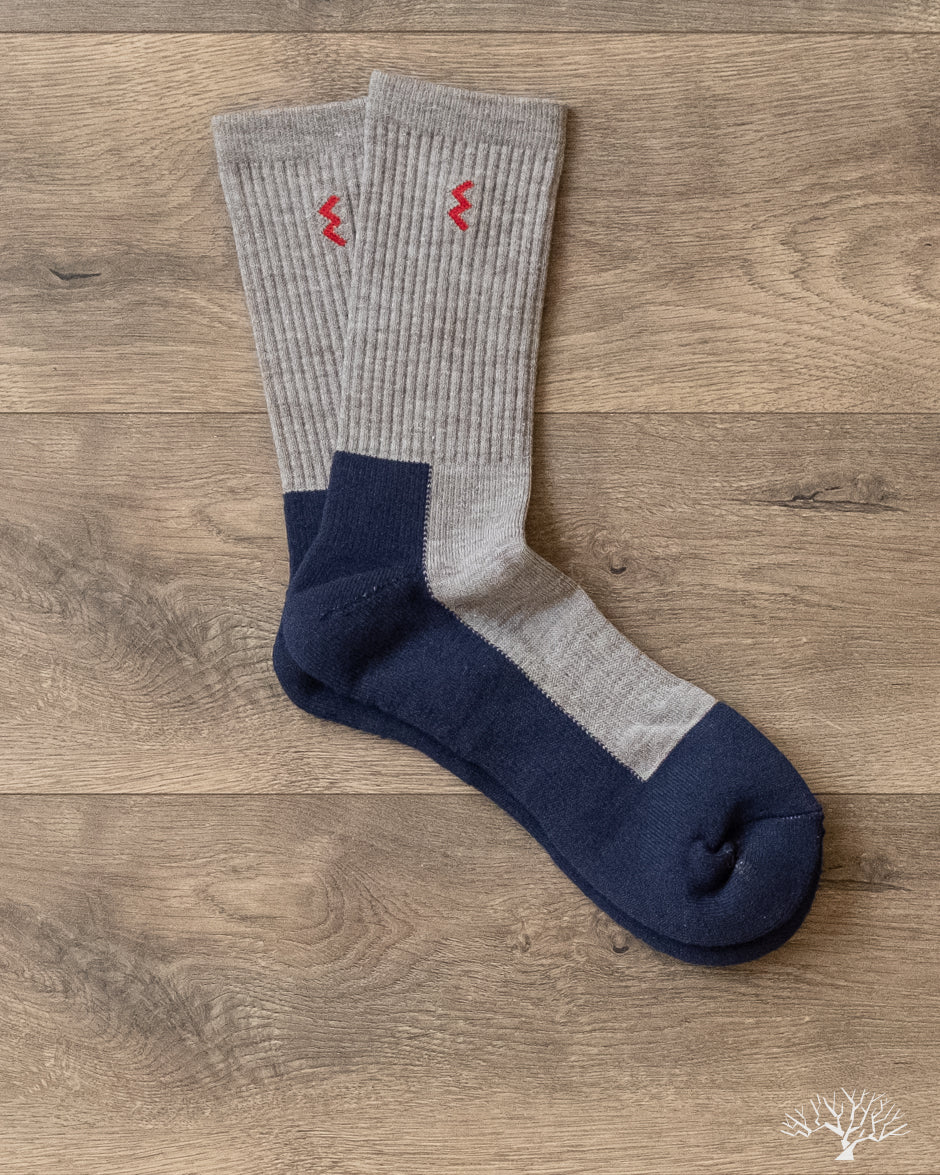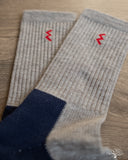 Iron Heart's Grey/Navy Work Boot Socks are hard wearing and double cushioned in areas for extra durability and comfort. A double rib constructions makes sure these don't slip as you wear them throughout your day. An embroidered red "W" accents the socks to let folks know what's up.