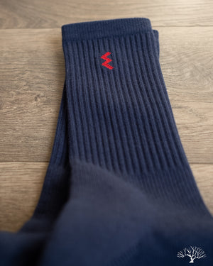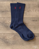 Iron Heart's Navy Work Boot Socks are hard wearing and double cushioned in areas for extra durability and comfort. A double rib constructions makes sure these don't slip as you wear them throughout your day. An embroidered red "W" accents the socks to let folks know what's up.
